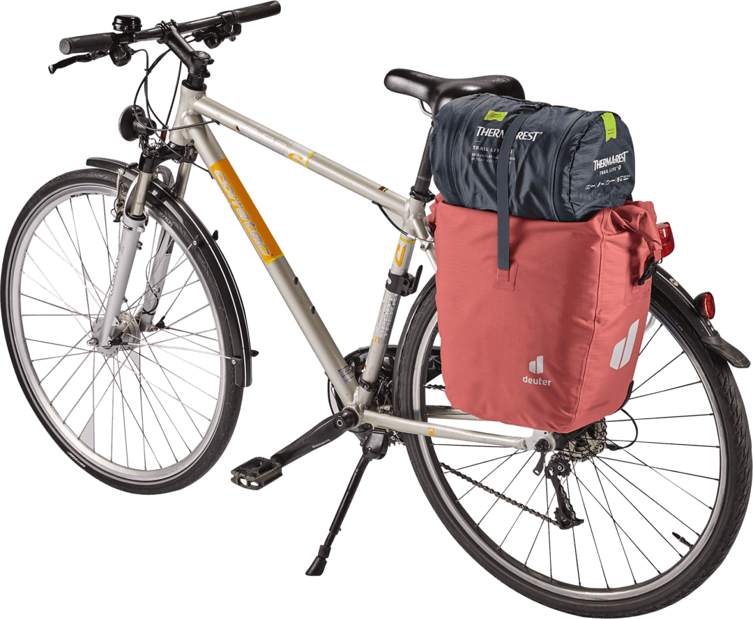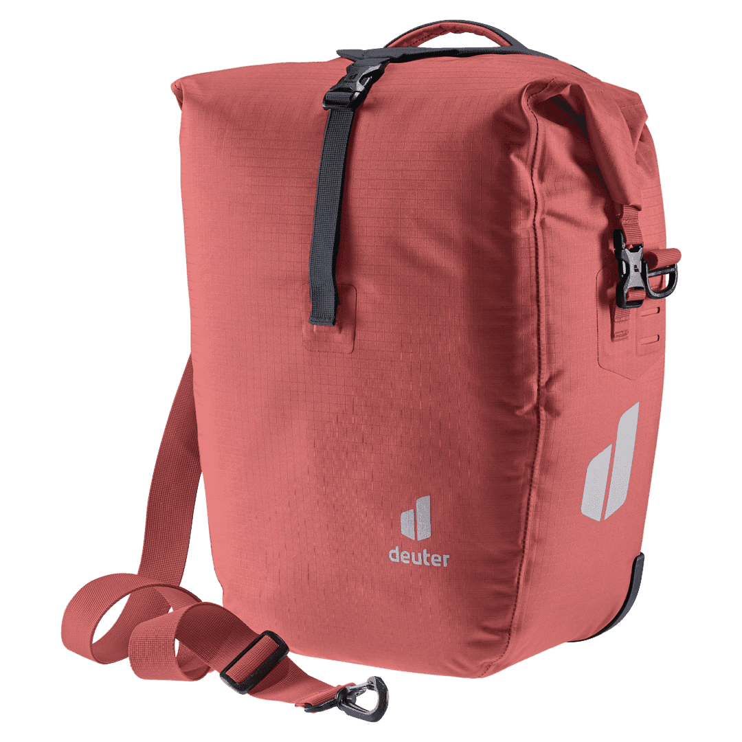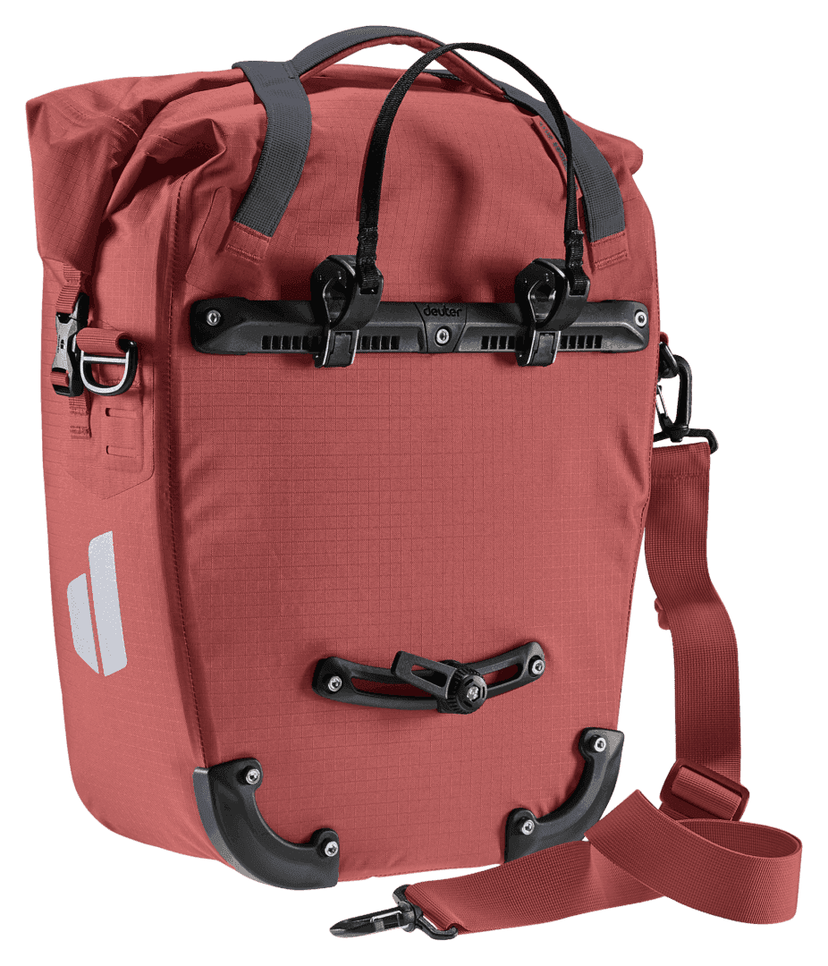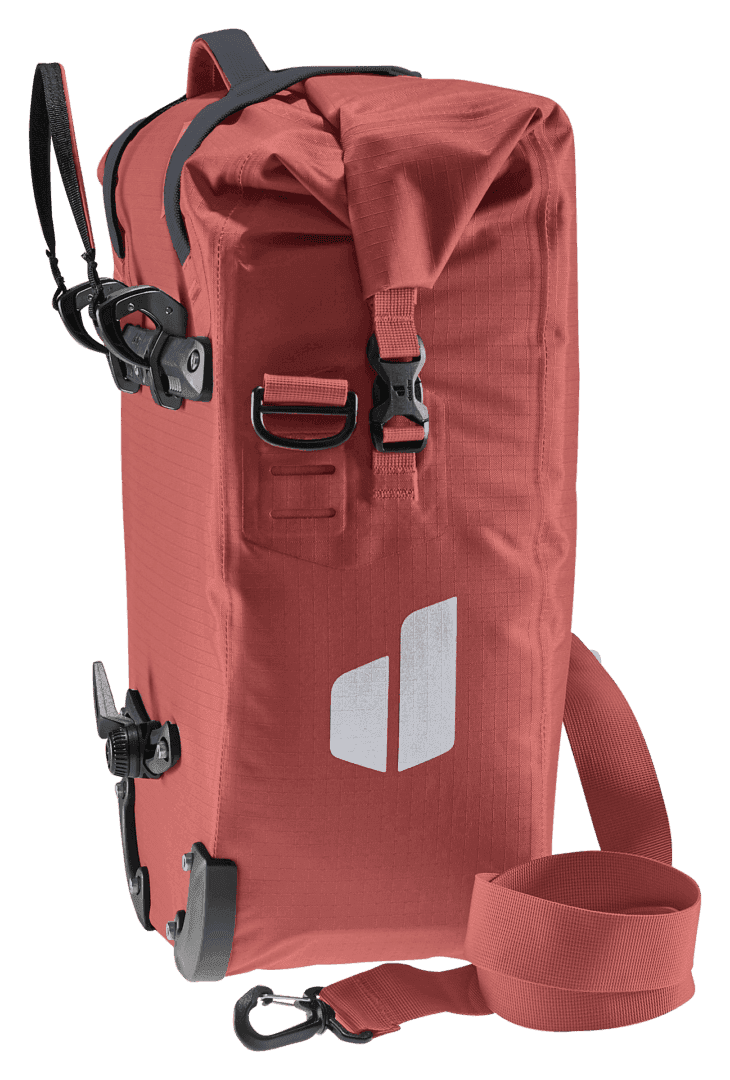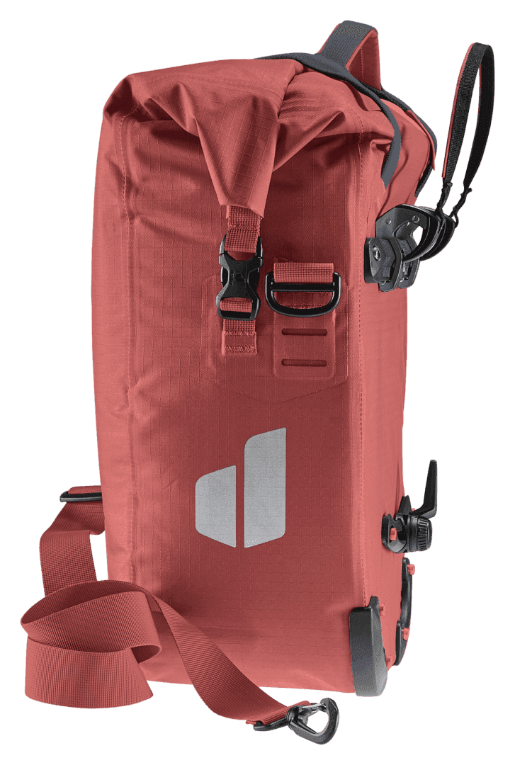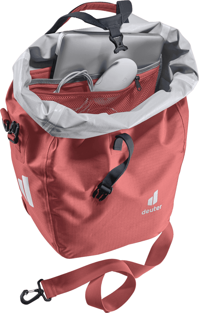 La bolsa impermeable para bicicletas mantiene la compra, la muda y el material de trabajo a salvo de la lluvia o las salpicaduras de agua. Gracias a la generosa solapa del bolsillo con cierres magnéticos, el volumen de este talento organizativo puede ampliarse en 10 litros adicionales de espacio de almacenamiento
