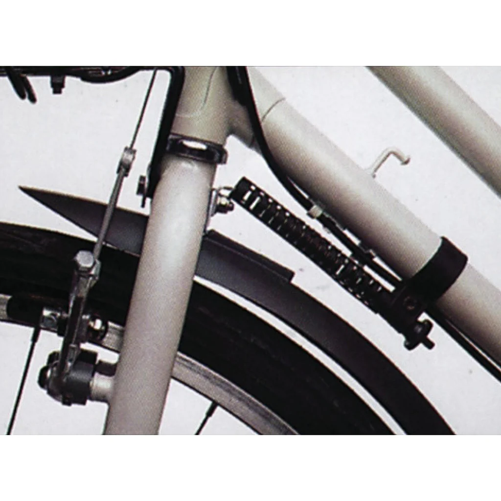 Cuando se utiliza un soporte bípode, el problema es que la rueda delantera cuelga en el aire cuando se aparca y tiende a volcar. Hebie ha desarrollado el amortiguador de dirección para evitar que el manillar se vuelque.