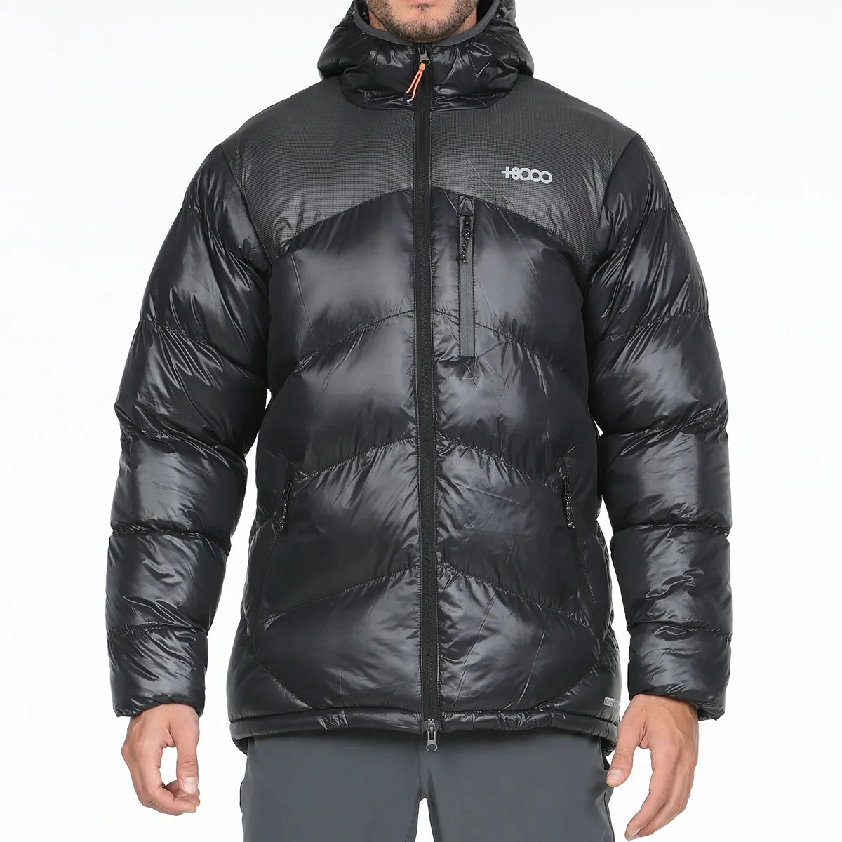 Está chaqueta con capucha de +8000 para hombre, se caracteriza por un alto poder aislante térmico, una gran ligereza y que es repelente al agua. Está fabricada en 100% nylon taffeta 52gr/m2 (nano-flight). Es perfecta para la práctica del trekking/hiking, y por ello, cuenta con bolsillos laterales con cremallera, puños elásticos, un bajo ajustable con tankas, bolsillo extra en el pecho y capucha ajustable remata con vivo elástico.