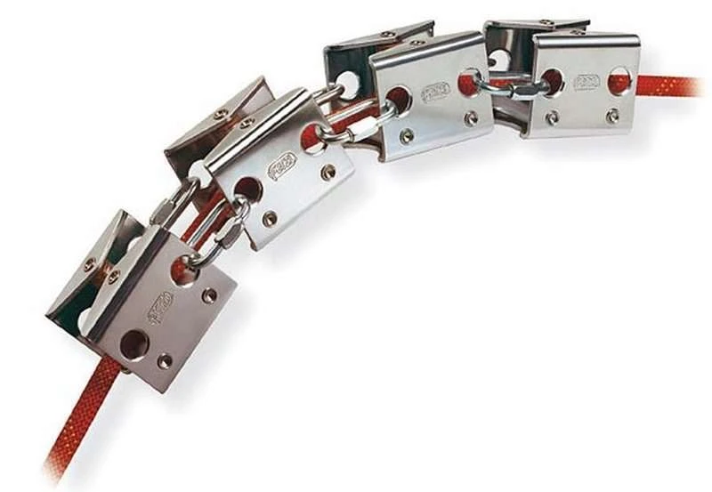- Rodillos verticales y horizontales de acero que guian la cuerda en movimiento con un mínimo de fricción