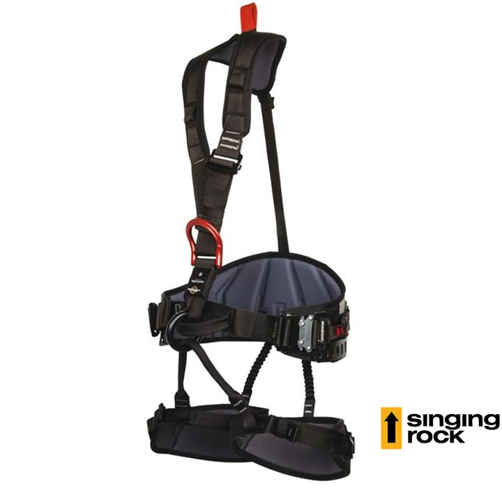 - La impresión reflectante en el cinturón aumenta la visibilidad del arnés.