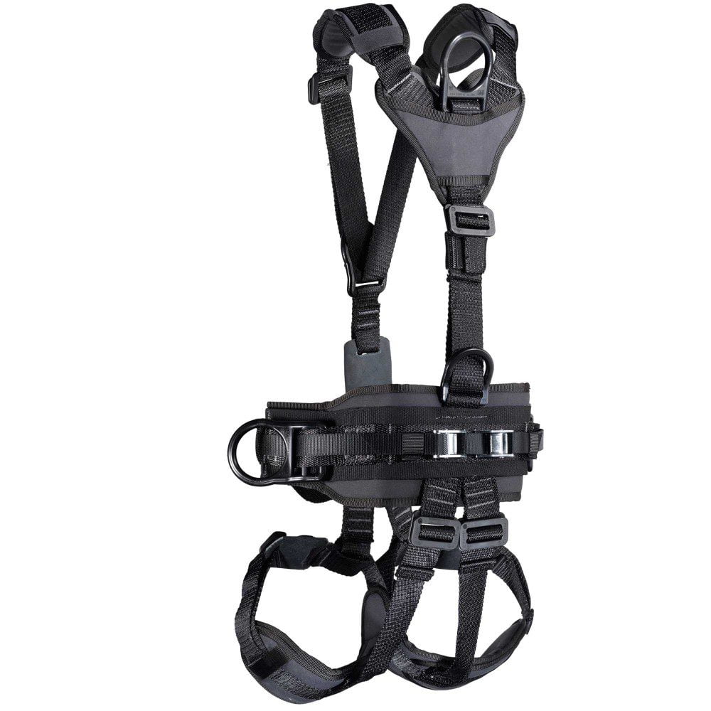 Puntos de conexión: anilla dorsal, anilla pectoral, anilla de sujeción, anilla de protección de acceso, anilla del arnés de cintura