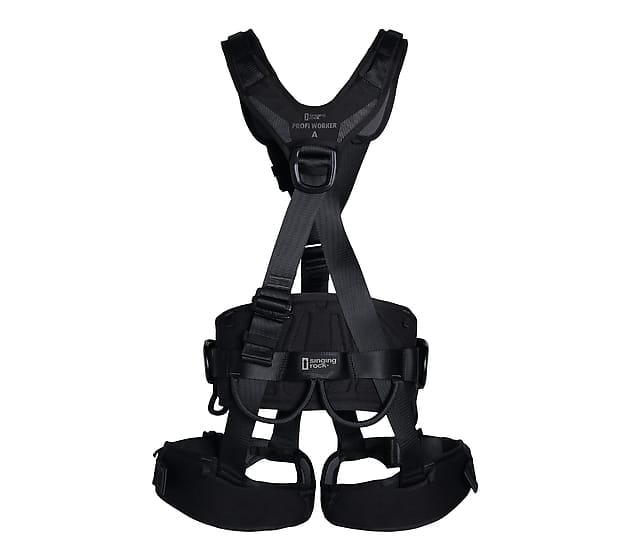 - Correa reflectante e impresión en el cinturón y una correa reflectante en el acolchado de los hombros aumentan la visibilidad en condiciones de trabajo oscuras (la versión negra del arnés no está equipada con elementos reflectantes)