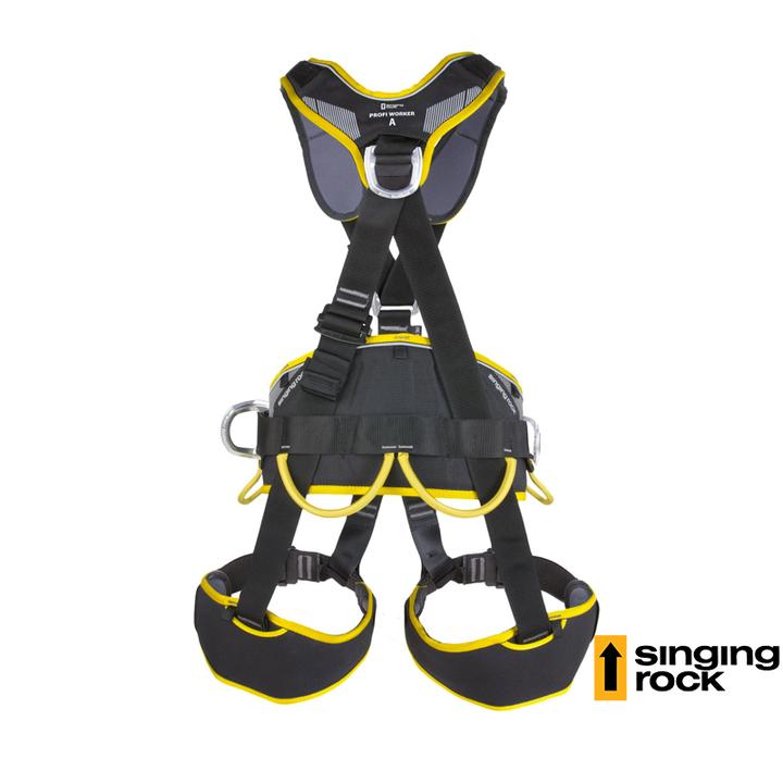 - Correa reflectante e impresión en el cinturón y una correa reflectante en el acolchado de los hombros aumentan la visibilidad en condiciones de trabajo oscuras (la versión negra del arnés no está equipada con elementos reflectantes)