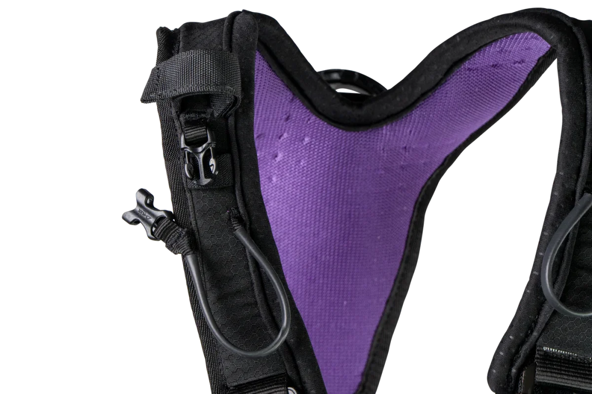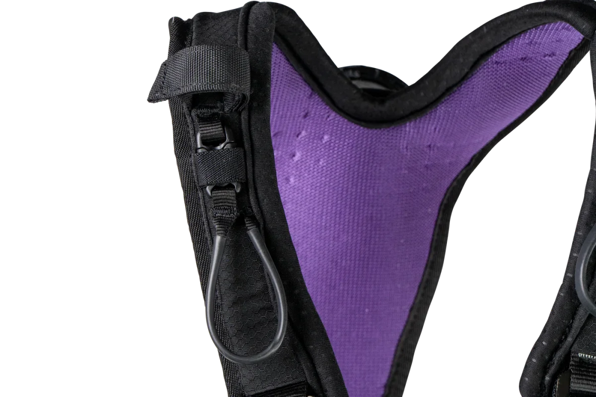 Las anillas laterales se pliegan para evitar enganches. Para la gestión del equipo, SOLACE cuenta con 5 presillas rígidas para material, 6 presillas para accesorios y ranuras compatibles con los accesorios de la ESTACIÓN DE TRABAJO (bolsas, correas, organizadores, etc.) para que tus herramientas y cordones estén a mano.
