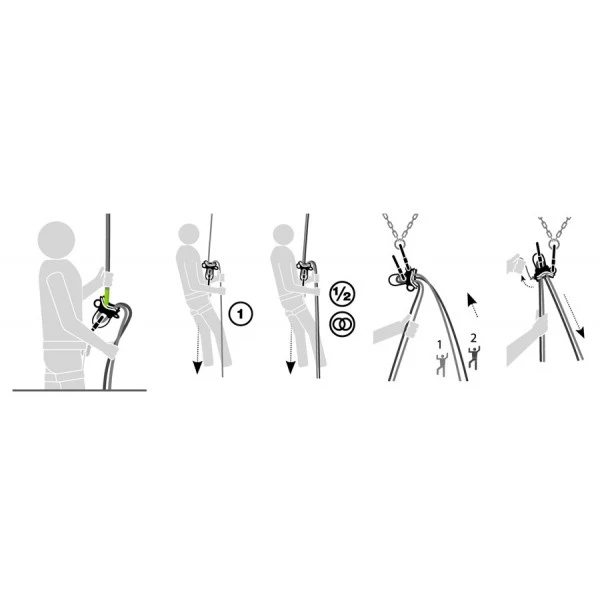 - Las dos gargantas en V permiten dar cuerda con facilidad, al tiempo que garantizan un control eficaz del frenado para optimizar la absorción de la energía al detener la caída del primero.