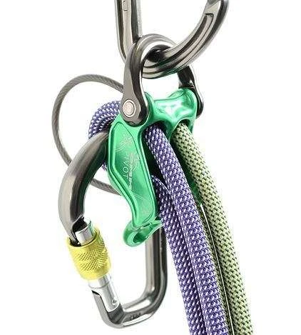 Asegurador de escalada y descensor en doble cuerda, gemela o simple.