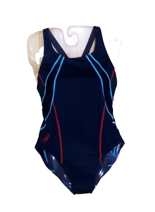 - El escote alto, la solución para la espalda en forma de V y el patrón en las piernas permiten la libertad de movimiento en el agua.