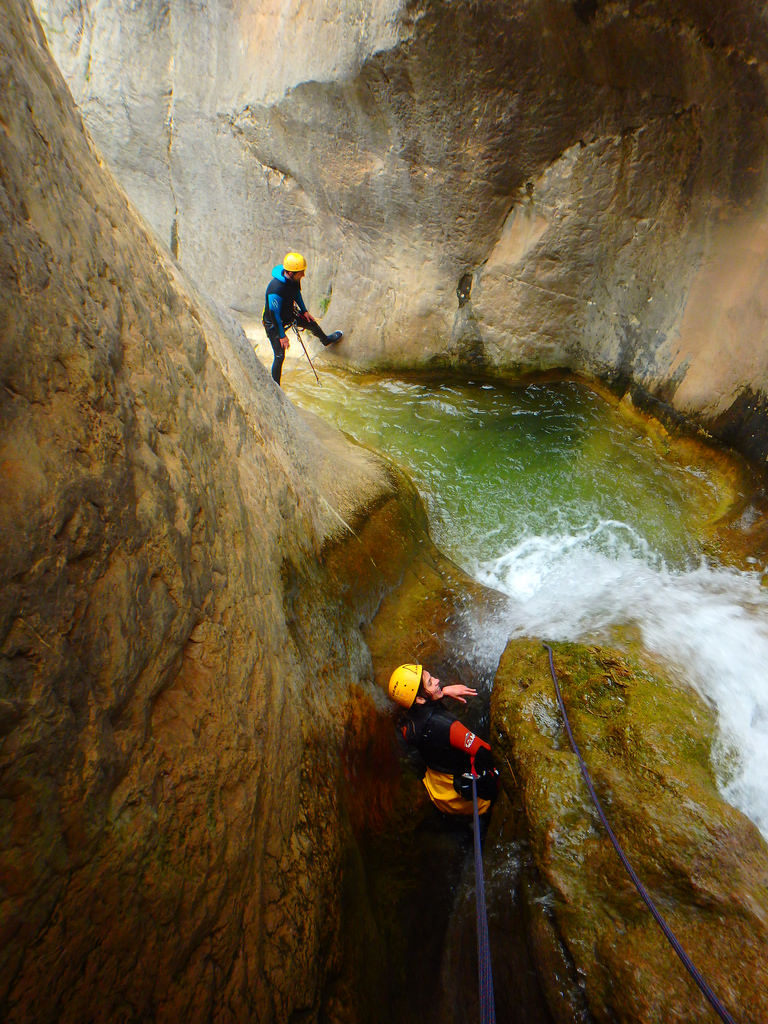 El Barranco del Centenar se encuentra en Zucaina, un pueblecito del interior de Castellón. Es uno de los mejores descensos de la provincia, encerrando rappeles de gran belleza. Su último salto de más de 60m de altura conocido como » El Chorrador» se puede evitar realizando la parte superior del descenso como actividad de iniciación o completo como actividad de dificultad alta.