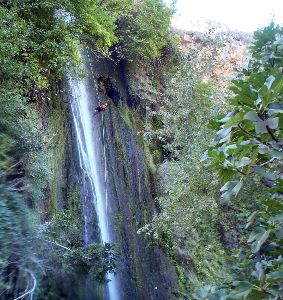 El rappel final de cerca de 60m de cascada muy vertical es comparable y para algunos incluso supera al rappel grande de Otonel.