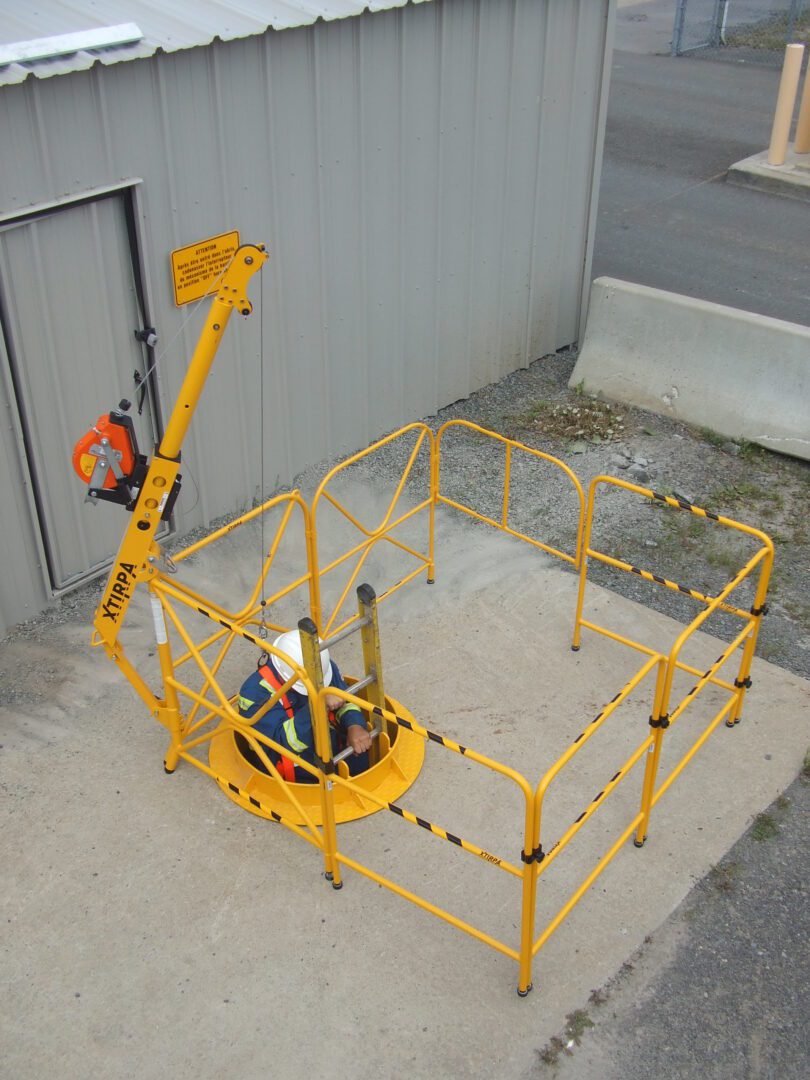 Cuenta con un mástil para la instalación del brazo pescante IN-2210, lo cual permite la entrada y salida de los trabajadores sin riesgo de caída desde una alcantarilla, tubería o similar y previene la caída de terceros desde el exterior de la barrera.