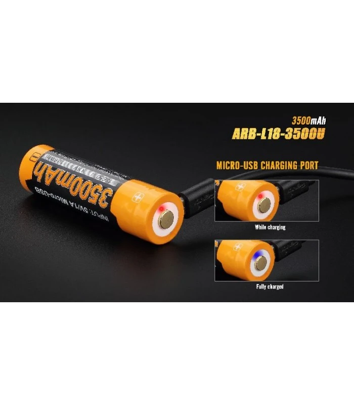 La batería ARB-L18-3500U es una batería 18650 que se puede cargar por su propio puerto micro USB y con un cargador también.