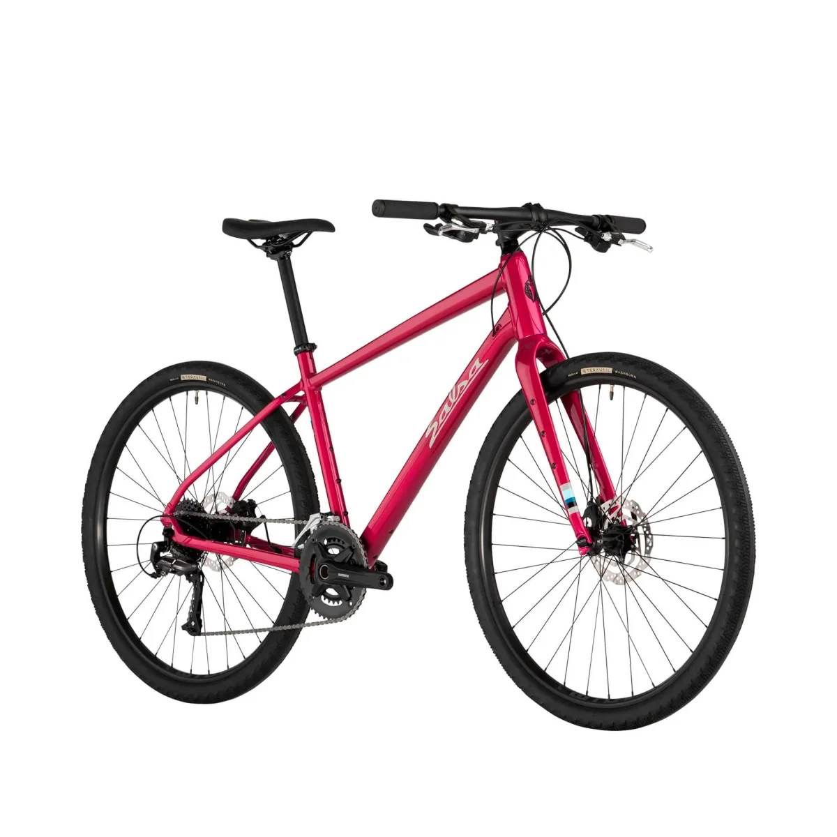La Salsa Journeyer Flat Bar es una bicicleta “all-road / gravel” pensada para quienes buscan comodidad, versatilidad y capacidad de carga. Con su cuadro de aluminio ligero y resistente, horquilla Fantail y manillar plano, ofrece una posición cómoda y erguida, ideal para rutas largas, caminos de tierra, gravel o uso urbano con carga. Gracias a sus montajes para portabultos, guardabarros y múltiples soportes para bidones y accesorios, puedes equiparla para bikepacking, trayectos cotidianos o escapadas de fin de semana. Su transmisión fiable Shimano Altus 2×9 y ruedas robustas combinan eficiencia en carretera y control en caminos irregulares, haciendo de la Journeyer Flat Bar una opción versátil y accesible para ciclistas polivalentes.