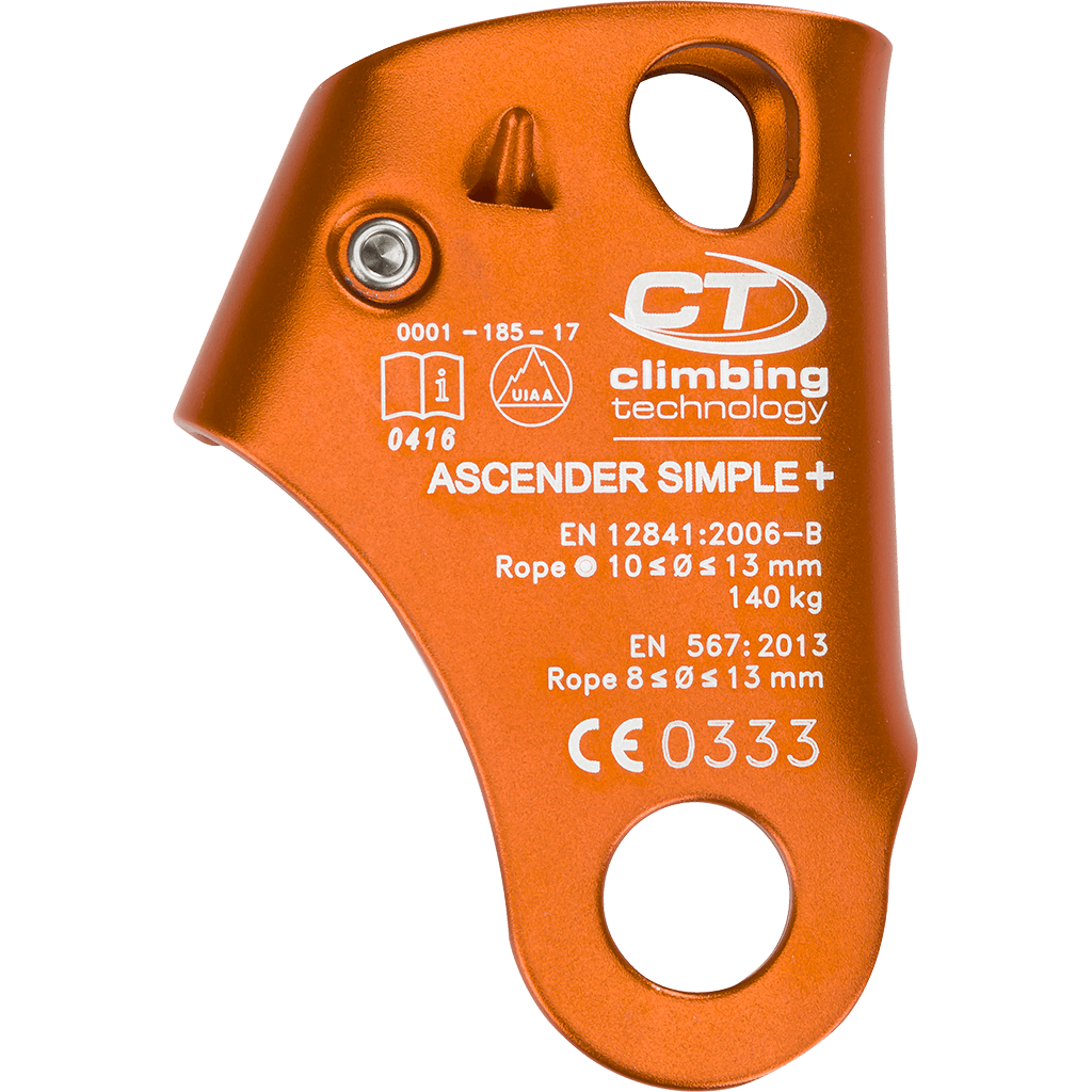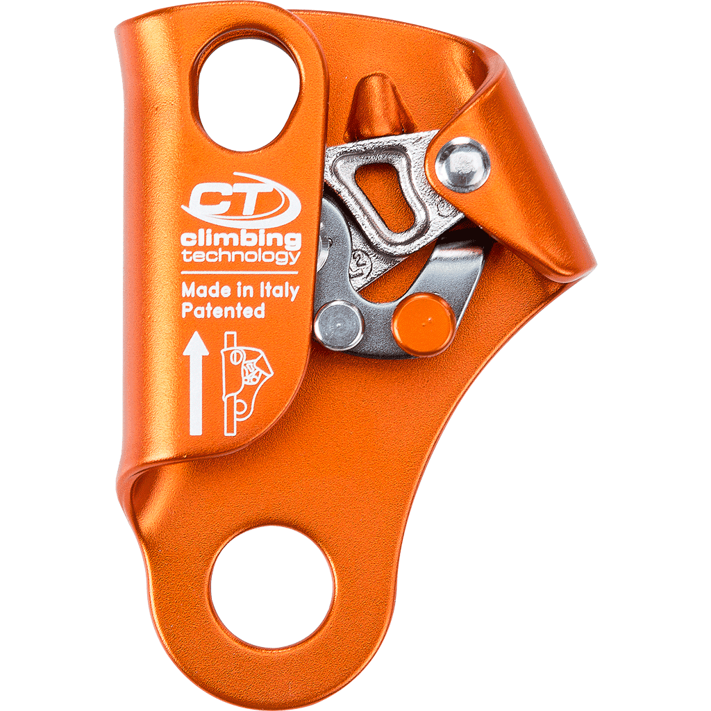 - leva en acero, producida con tecnología que incrementa la resistencia al desgaste. Dotada de una parte dentada que preservan la cuerda del desgaste, pero de igual eficacia en el bloqueo y en la subida por ésta. Además presenta tres orificios para evitar la acumulación de barro y reducir el esfuerzo necesario para que se deslice el dispositivo hacia arriba por la cuerda en cualquier condición. (corda embarrada, helada etc);