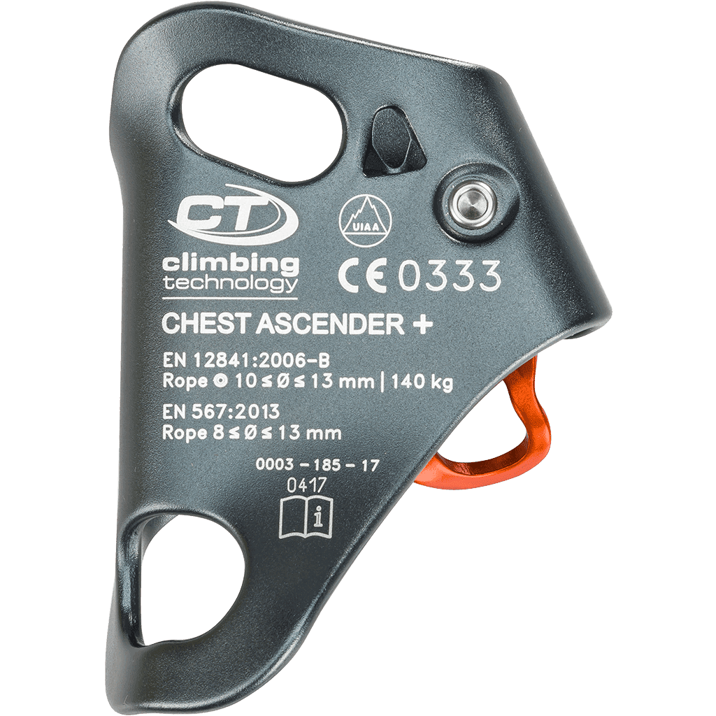 - leva en acero, producida con tecnología que incrementa la resistencia al desgaste. Dotada de una parte dentada que preservan la cuerda del desgaste, pero de igual eficacia en el bloqueo y en la subida por ésta. Además presenta tres orificios para evitar la acumulación de barro y reducir el esfuerzo necesario para que se deslice el dispositivo hacia arriba por la cuerda en cualquier condición (corda embarrada, helada etc);