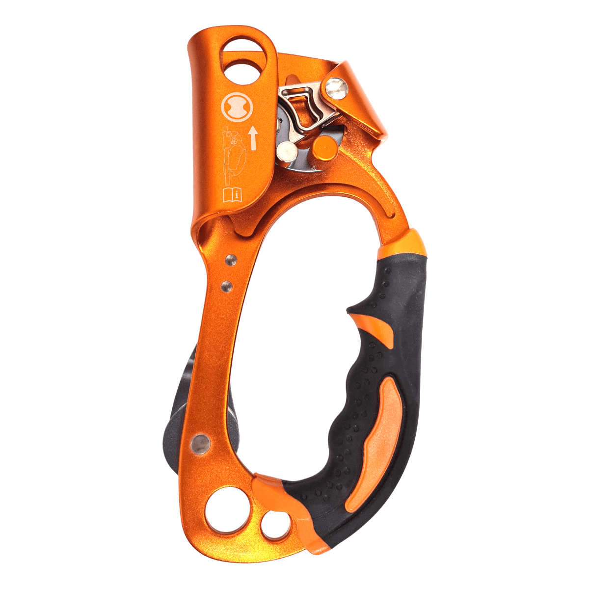 Este modelo de bloqueador cuenta con un revestimiento ergonómico de la empuñadura que mejora la eficacia de la tracción al tiempo que garantiza una gran resistencia al desgaste. La palanca de apertura de la leva puede accionarse cómodamente con una sola mano, mientras que el sistema de desbloqueo patentado se activa con un solo movimiento hacia abajo (Fig. A-B-C). Las levas de acero están fabricadas con una tecnología especial que aumenta la resistencia al desgaste. Su dentado preciso evita el desgaste de la cuerda, pero proporciona un agarre fiable y facilita el ascenso por la cuerda. Tres rebajes evitan la acumulación de suciedad y permiten un uso eficaz incluso en condiciones exigentes, como cuerdas sucias o heladas. Además, el bloqueador cuenta con dos aberturas de tope para un uso versátil y un sistema de leva a prueba de inclinación.