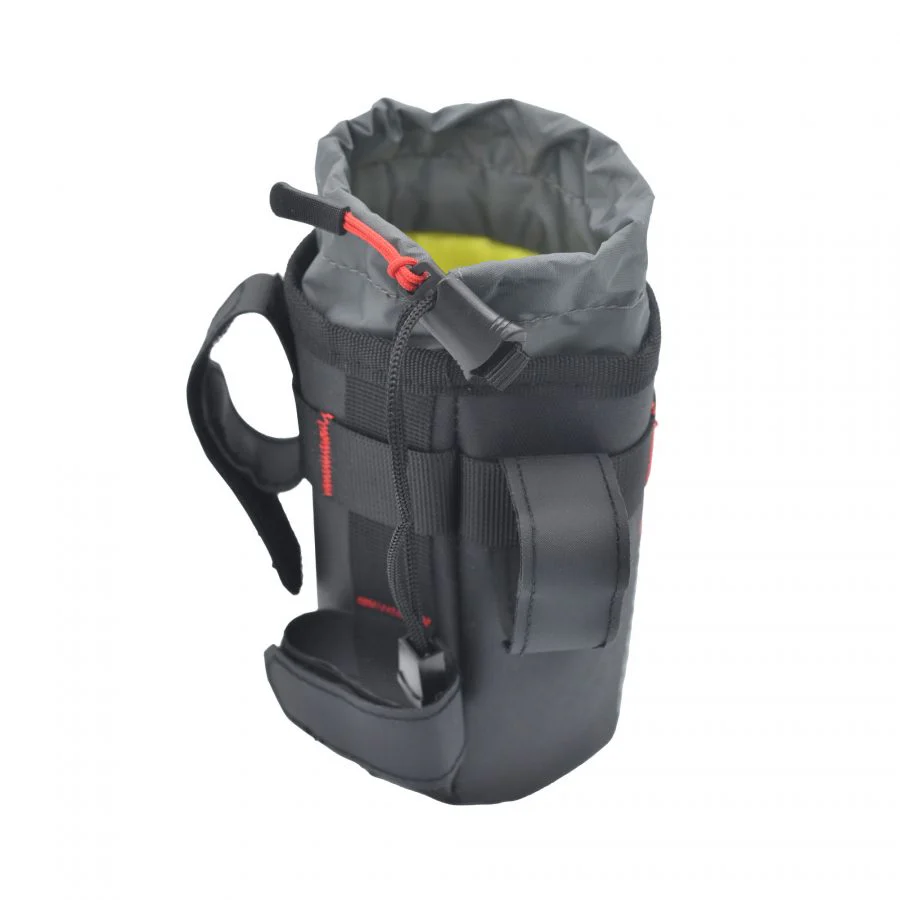 Práctica bolsa de potencia para llevar a mano lo que desees, incluido un bote de bebida extra. Nueva bolsa pequeña de potencia fabricada enteramente en Nylon 600D. Este Nylon es totalmente impermeable y lleva un tratamiento externo de PU (Poliuretano) que repele el agua y hace que la bolsa se seque rápidamente en contacto con el aire. La bolsa lleva una una película de TPU (Poliuretano Termoplástico) que la hacen totalmente impermeable. La bolsa cuenta con un cierre extensible de Nylon y se realiza mediante una goma elástica que permite ser tensada y destensada con una sola mano. El interior de espuma hace la función de aislante para poder mantener la temperatura del agua si decides usarla como portabotes extra. Este interior está forrado en Ripstop de color fluor de alto contraste y es impermeable. La bolsa se fija al manillar y la potencia mediante Velcros reforzados con Hypalon y posee logos reflectantes y un práctico bolsillo exterior de malla elástica para poder llevar objetos más a mano. Una vez la montes ya no podrás salir sin ella.