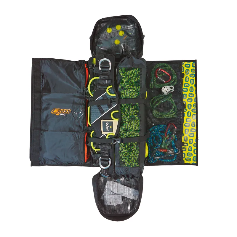• 2 correas transversales para sujetar la cuerda o el arnés.