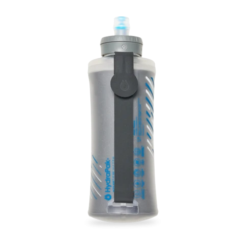 - El tipo de boquilla es mordida para evitar goteos y también tienes disponible un tapón que se abre haciendo palanca para poder destapar y poder beber más rápido. Bidón Flexible Hydrapak Skyflask 500 ml puedes rellenarlo de bebida isotónica, agua, gel…