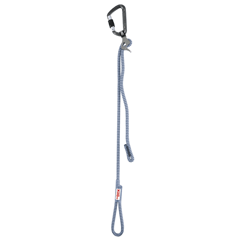 El componente metálico está hecho de acero inoxidable. Su diseño es único. Se fija al punto de amarre del arnés con el lazo. Una vez conectado, simplemente tire del extremo libre del cordón para tirar hacia el ancla o libere la tensión sosteniendo el dispositivo abierto con la palanca del pulgar.