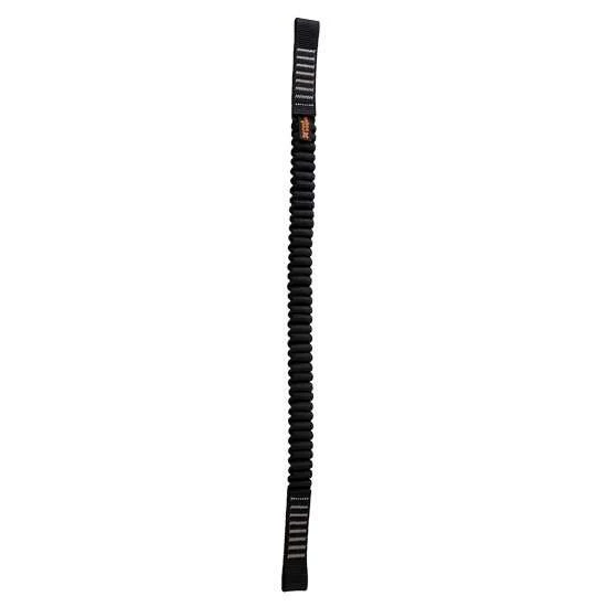 - Está fabricado con cinta plana elástica que se estira casi el 50% de su longitud, reduciendo el riesgo de tropezar con él o de quedar atrapado en obstáculos durante el transporte o la manipulación.