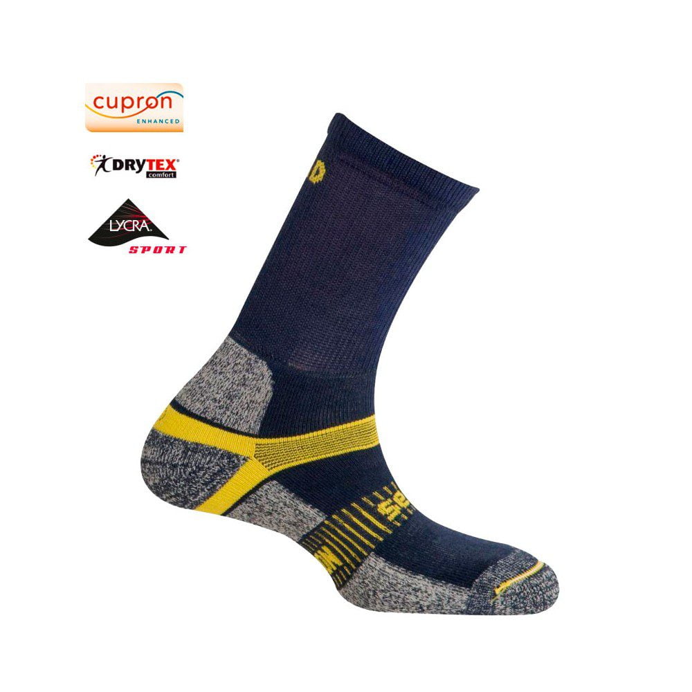 Calcetín sin costuras para evitar molestias. Cuenta con nuestra exclusiva tecnología de control de flexión del pie para evitar la aparición de arrugas en la prenda durante la práctica deportiva. Franja elástica en el pie para perfecta sujeción y reducción del riesgo de aparición de ampollas. Doble rizo en el pie con efecto acolchado para amortiguar la pisada en terrenos no uniformes. Grosor medio-alto.