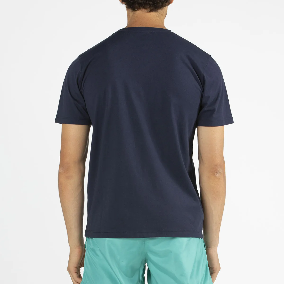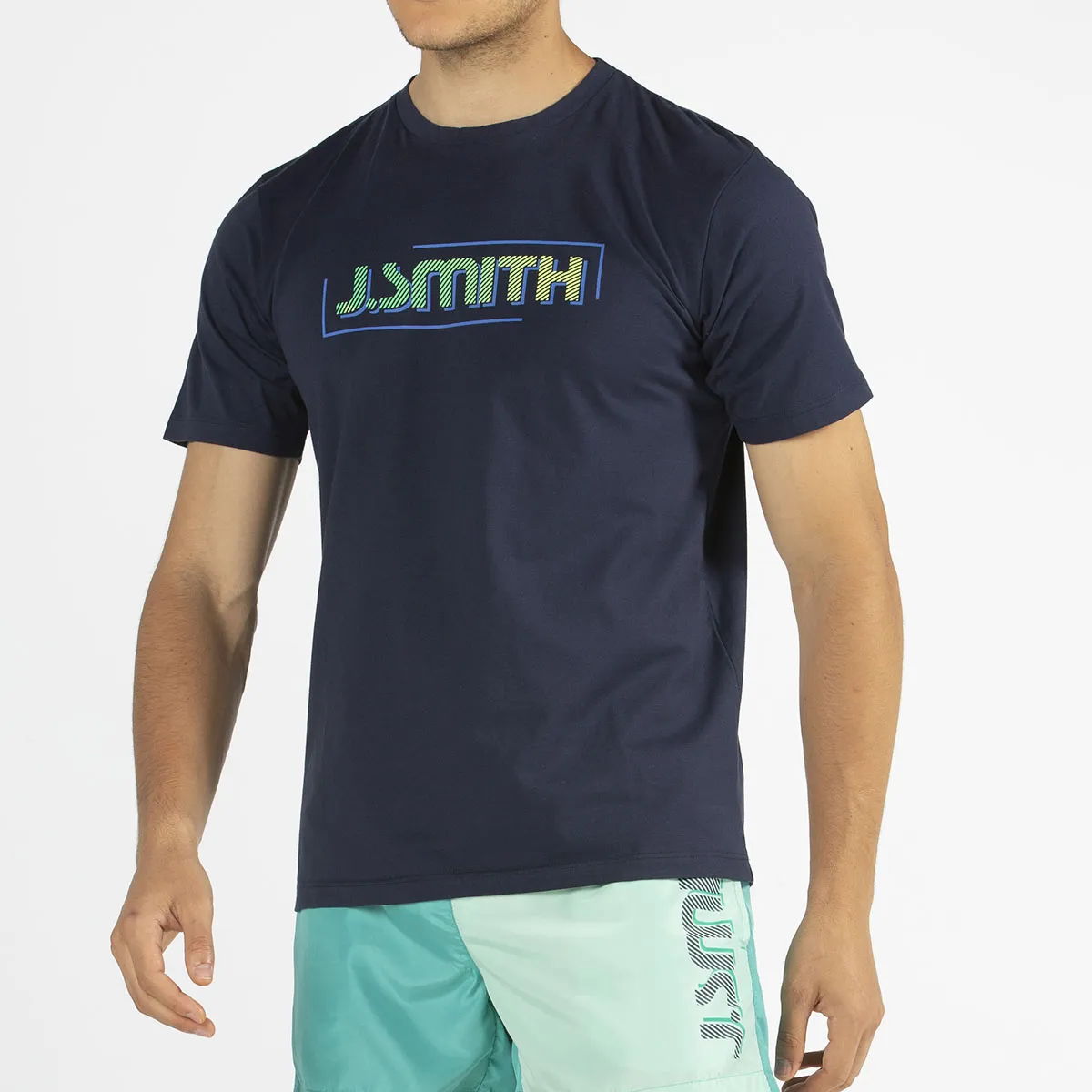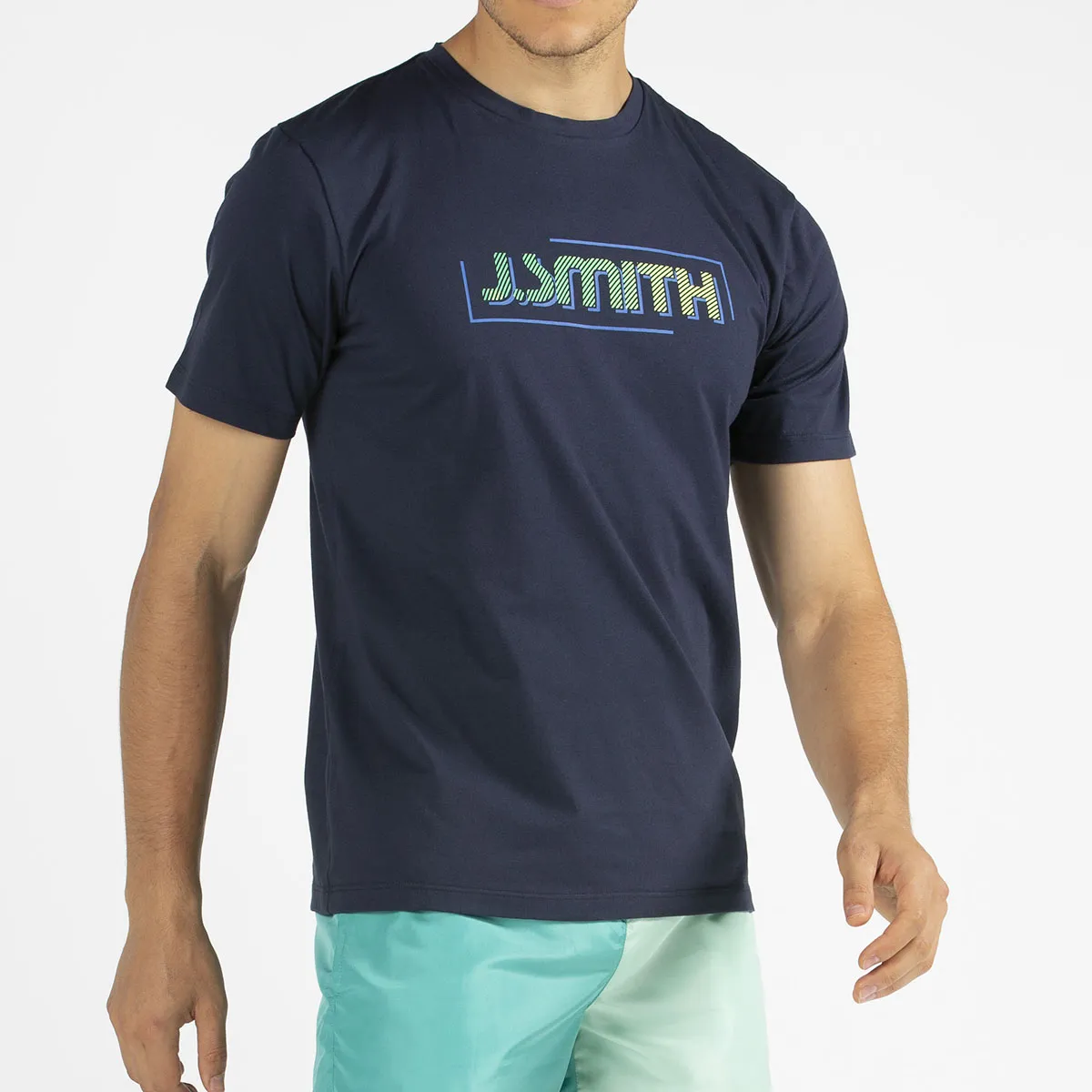 Camiseta John Smith Gael, 100% algodón, de manga corta azul marino, con rib en el cuello y gráfico serigrafiado de John Smith verde en el pecho.