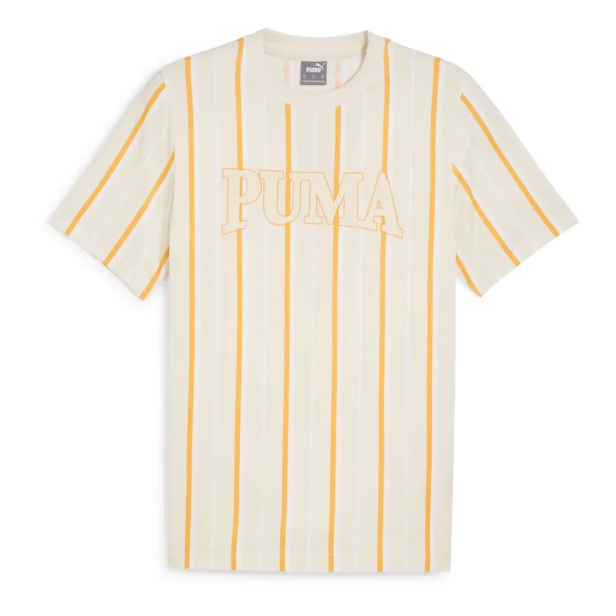 La camiseta Puma Squad All-Over-Print es perfecta para lucir un estilo deportivo y moderno. Descubre la comodidad y calidad de esta prenda, ideal para el día a día. Su diseño con rayas le da un toque único y original.