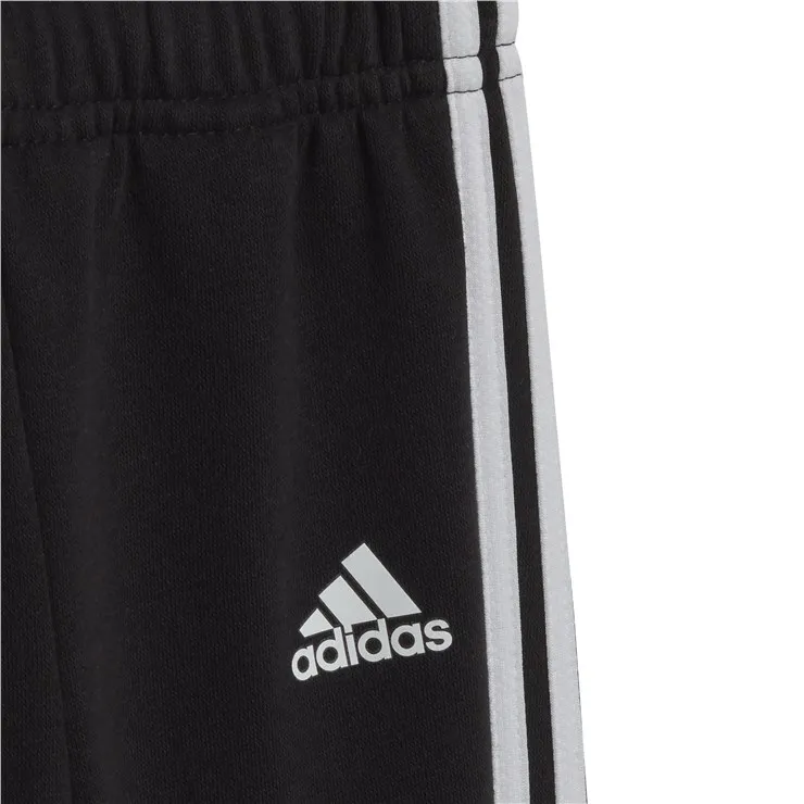 Este conjunto de chandal adidas para bebé es imprescindible en el armario de cualquier pequeño. La cómoda mezcla de algodón y los puños de canalé los hacen perfectos para jugar, mientras que las 3 bandas añaden un toque deportivo. Un mínimo del 70% de este producto es una mezcla de materiales reciclados y renovables.