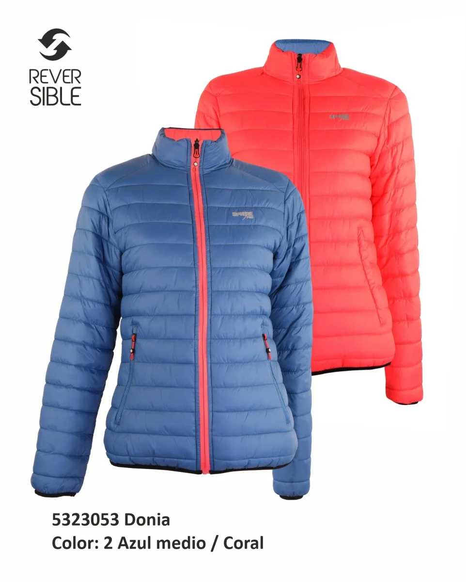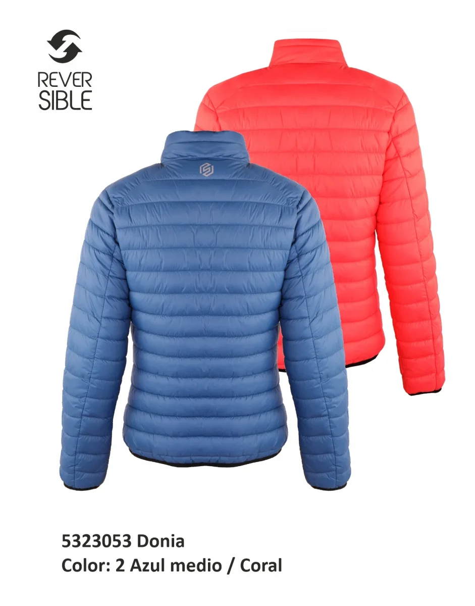 - Chaqueta reversible, por un lado en color azul y por el otro en color coral