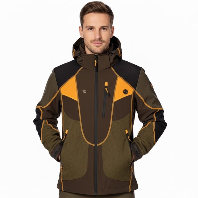 Chaqueta soft shell, transpirable e impermeable. Interior forrado de forro polar para mayor calidez. Incorpora bolsillo trasero para juegos. Con capucha desmontable y múltiples prestaciones , asi como hombros con tejido especial reforzado, tambien en bajo chaqueta para pinchos. muy buena prenda