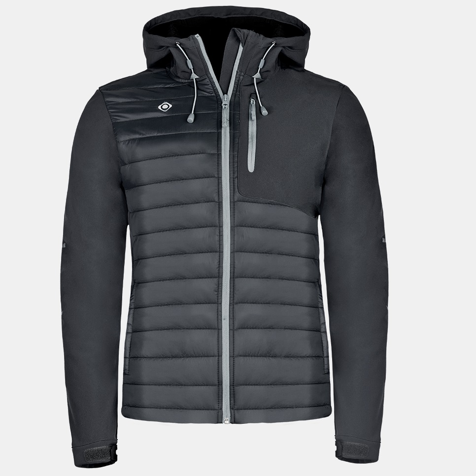 - Tejido Soft Shell y AWPS: Membrana cortavientos, resistente al agua, térmico y transpirable.