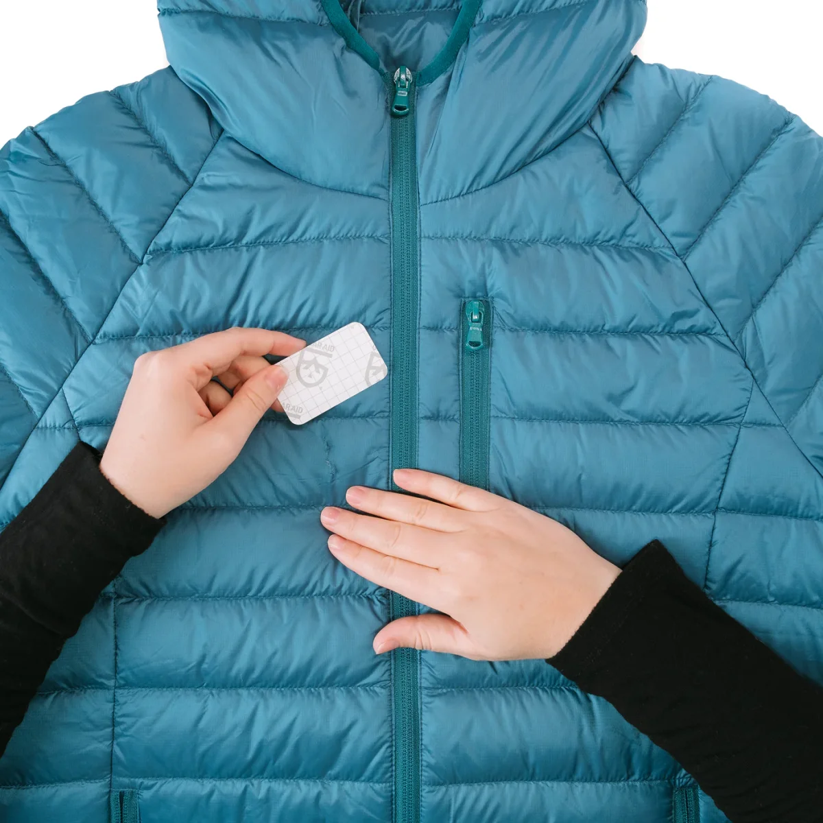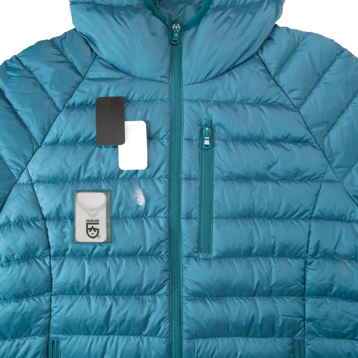 La próxima vez que tengas un agujero en tu chaqueta de pluma o sintética, busca Tenacious Tape Mini Patches de Gear Aid. Estos parches de chaqueta precortados son ideales para la reparación de una chaqueta de pluma o para reparar pequeños orificios en la ropa, tejidos técnicos y/o equipo.