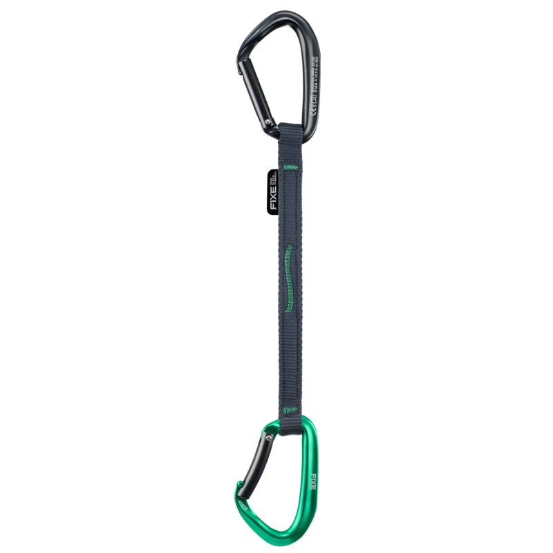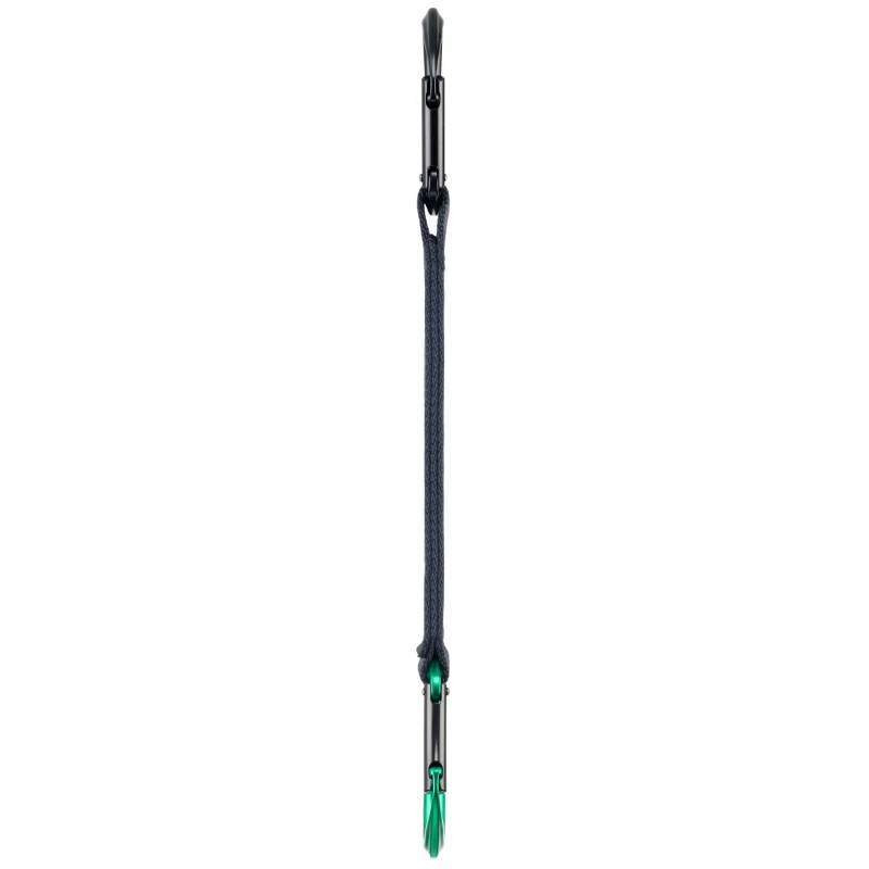 - Su robusta cinta de poliamida se mantiene firme en la pared, sin sufrir torsión, de esta forma el mosquetón siempre mantendrá la orientación deseada. El mosquetón inferior se mantiene fijo gracias a la costura oblicua que resigue su forma. En la parte central, su genuina costura de seguridad la hace inconfundible. La cinta está disponible en 4 longitudes: 12 cm, 18 cm, 24 cm y 35 cm.