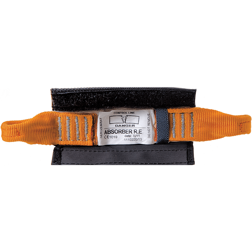 La absorción de la energía de la caída se realiza mediante la destrucción controlada del amortiguador de correas internas.