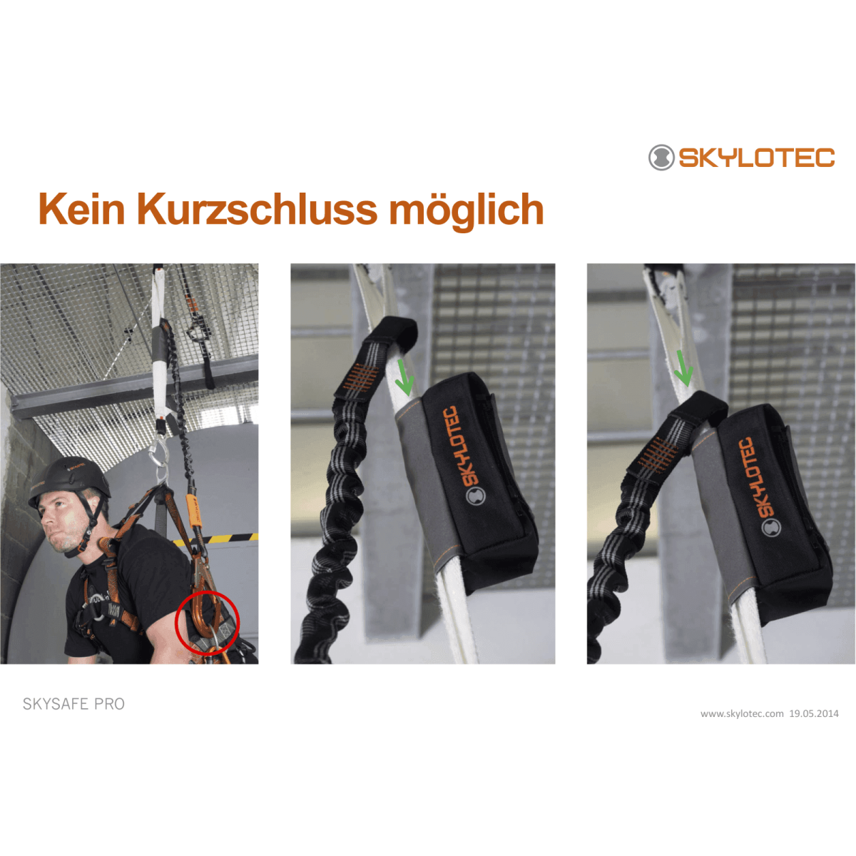 La resistencia al impacto final de 22 kN, también en el absorbedor, antes y después de una caída también es excepcional. SKYSAFE PRO además cumple con los estándares internacionales más relevantes en un producto SINGLE.