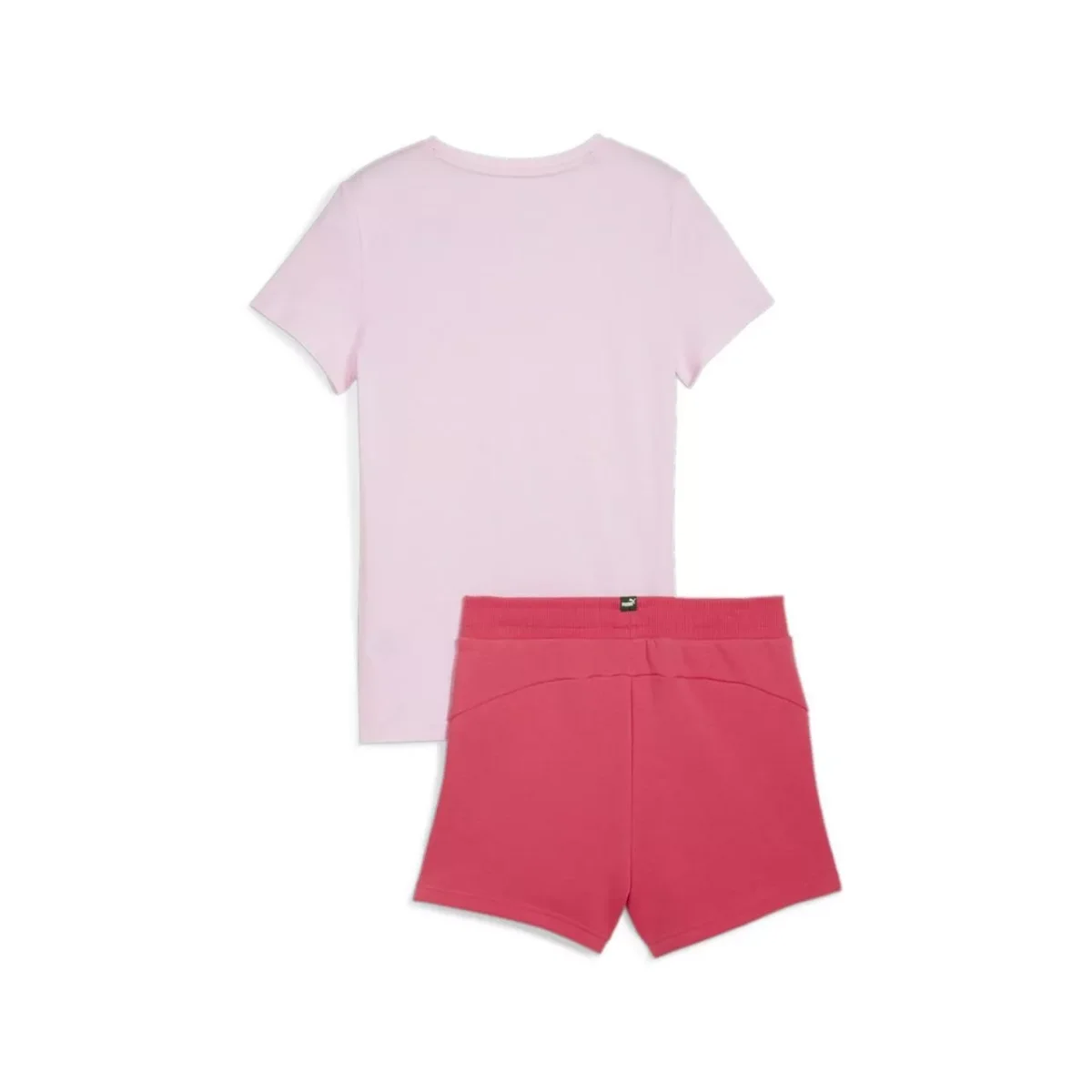 El chándal Puma Logo Tee & Set presenta llamativos detalles brillantes y discretas aberturas laterales para favorecer la libertad de movimiento, y está fabricado con fibras recicladas para reducir el impacto medioambiental.