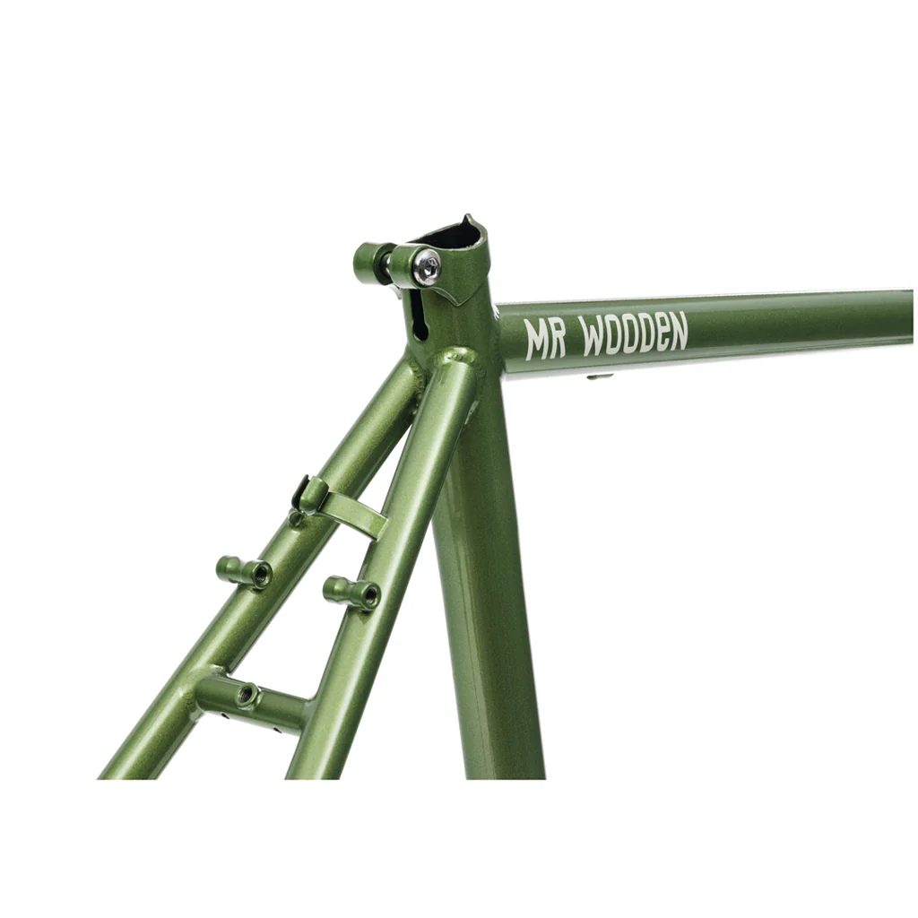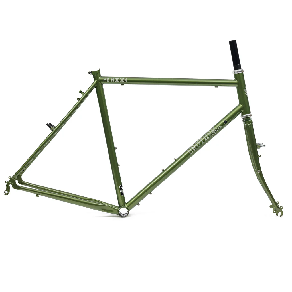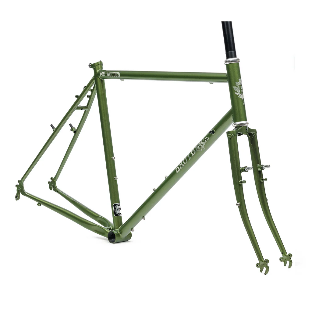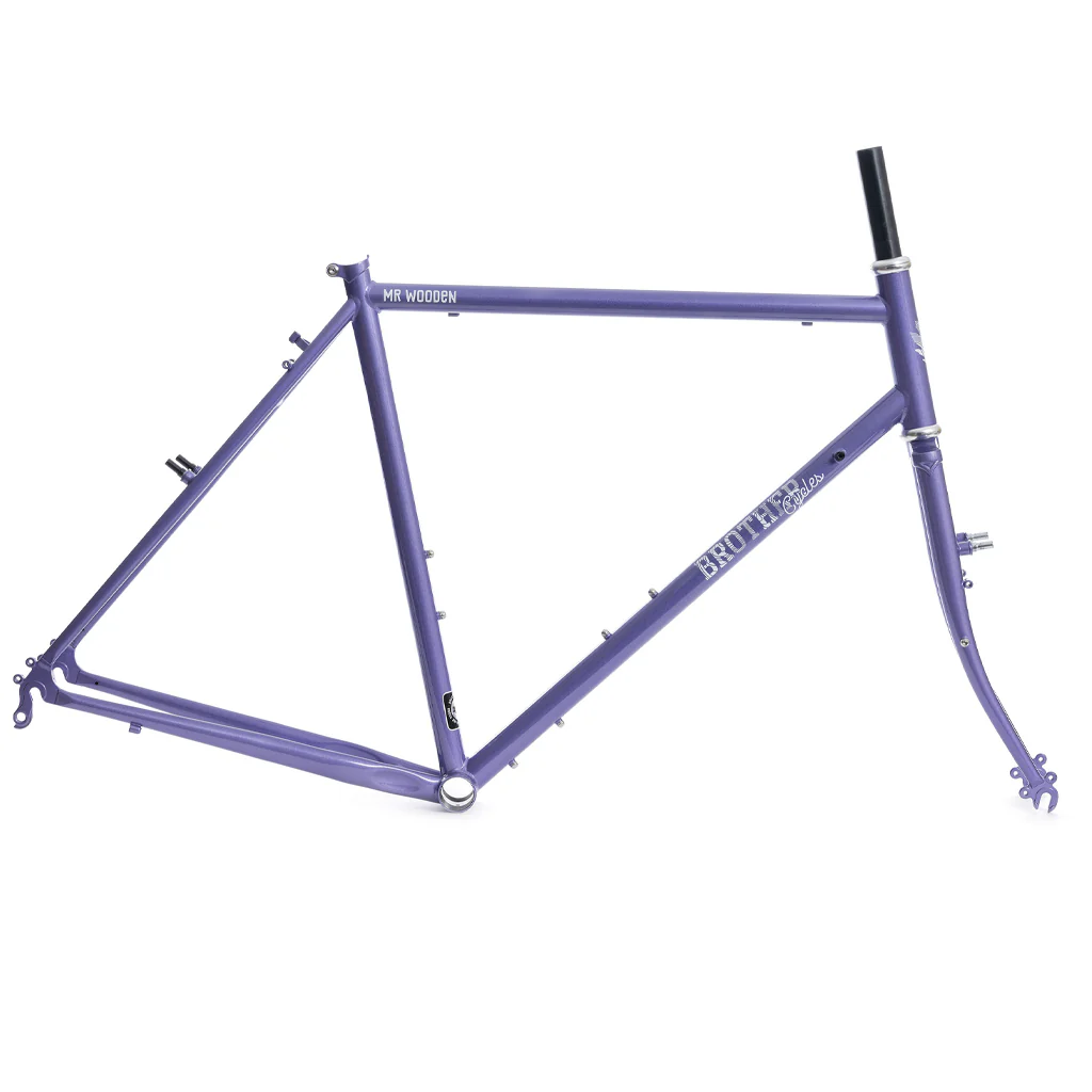 Mr Wooden es el cuadro polivalente de Brother Cycles: es una randonneur moderna, una gravel, una tourer que no teme aventurarse fuera de la carretera. Es como decidas montarla. El cuadro está diseñado para ruedas de cierre rápido de 650b (neumáticos de hasta 650b x 50) con frenos de llanta ¿Por qué frenos de llanta? Bueno, algunos argumentarán que son más fáciles de mantener y más fiables que los de disco; sin embargo, lo que sabemos con certeza es que nos permiten crear un cuadro más ligero que es muy cómodo, flexible y rápido, diseñado para esos largos días en el sillín en los que no estás seguro de dónde acabarás.