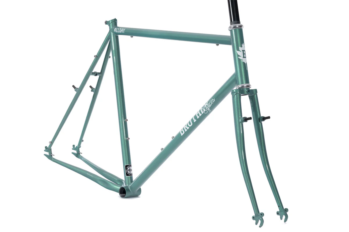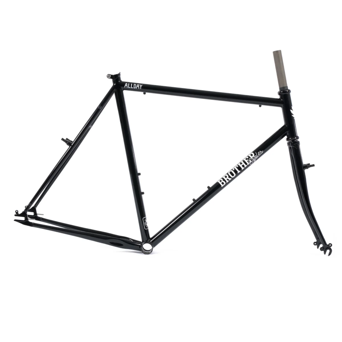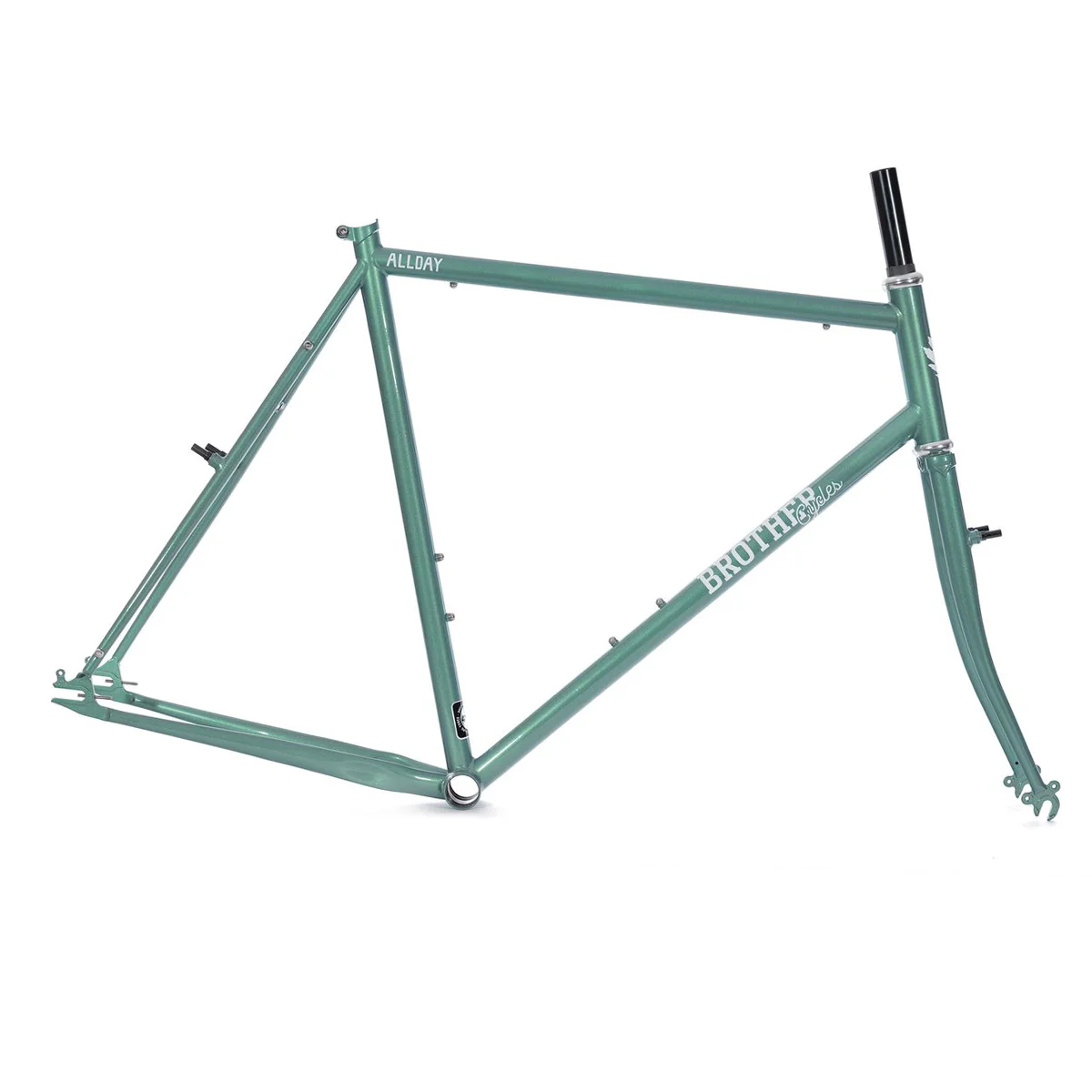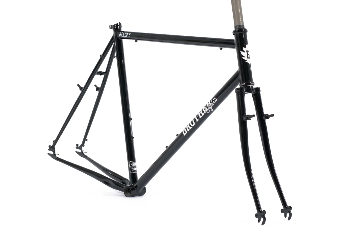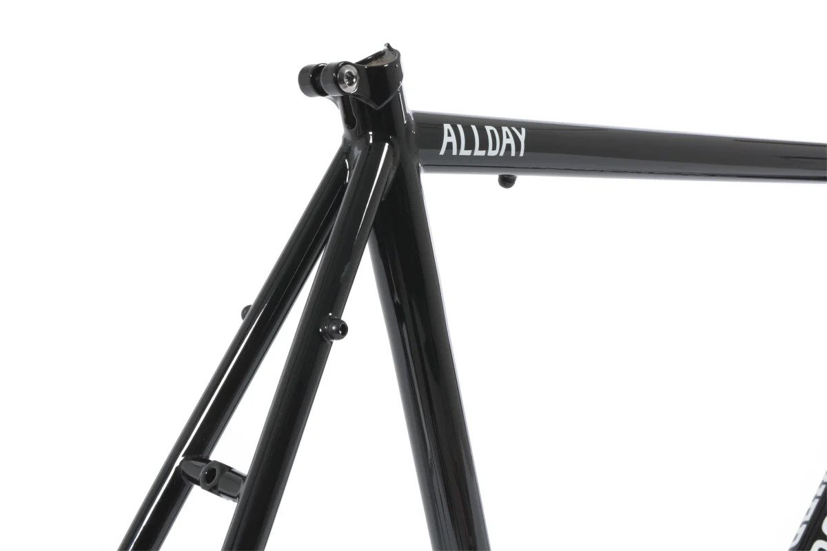 El cuadro The Allday es muy versátil. Puedes montarlo como bicicleta de piñón fijo / single-speed, “cross”, commuter o incluso bici ligera de aventura. Sus vainas en forma de S permiten espacio para neumáticos de hasta 38 mm para un uso más polivalente. Tiene múltiples puntos de montaje: soportes para 2 portabidones, guardabarros, portaequipajes delanteros y traseros. Sus “canti bosses” son removibles, lo que permite configurar frenos de tipo cantilever, V-brake o frenos normales de pastilla. Tanto si buscas una bicicleta para ir al trabajo, como una bicicleta de cross de una sola velocidad o una bicicleta de entrenamiento para el invierno, la Allday puede con todo.