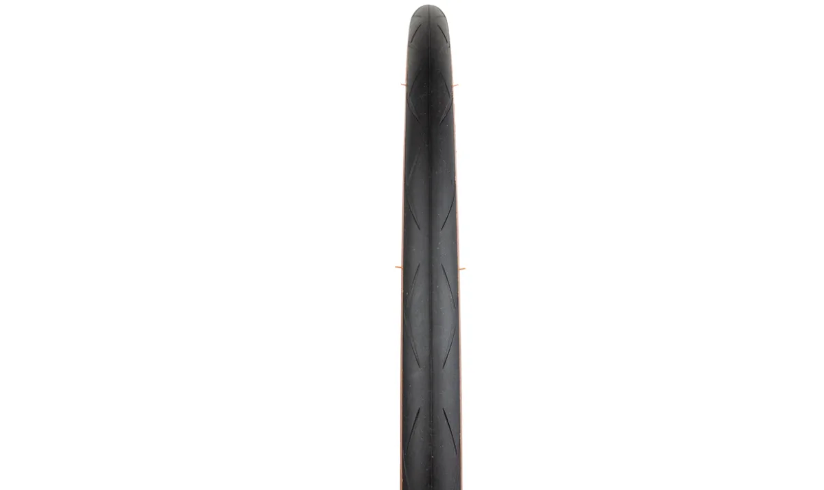 - Esta cubierta ha sido diseñada para adaptarse a las nuevas medidas de llanta, cada vez más anchas. Por lo tanto, también se ha rediseñado la huella, más ancha en un 15%, pero más corta, lo que ayuda a reducir el consumo de energía. En particular, se ha trabajado en la ampliación de la banda de rodadura, con el objetivo de proporcionar al ciclista una mayor seguridad con agarre en las curvas. Este ancho es un 15% más ancho y más bajo que el neumático de carretera Fusion 5 Performance Hardskin TLR.
