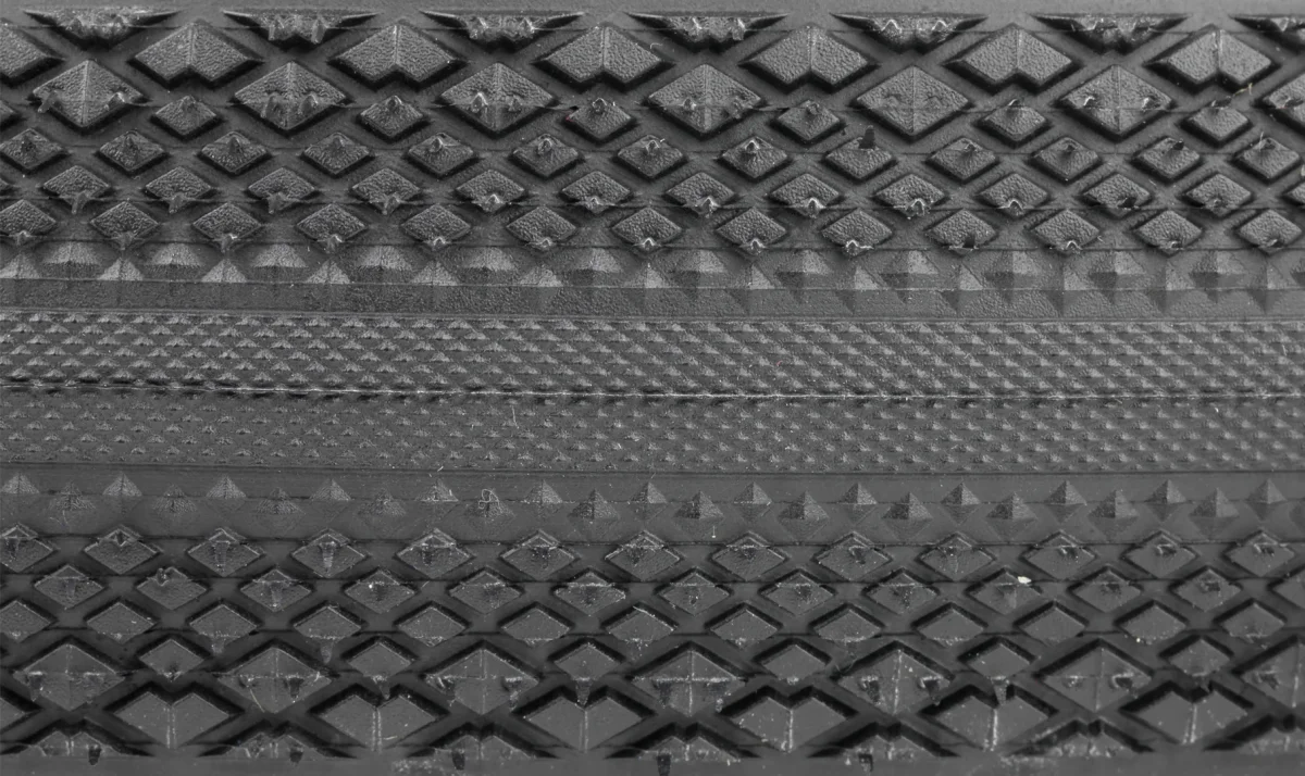 Su banda de rodadura formada por pequeños tacos en forma de diamante muy bajos ofrece un rodamiento rápido en terrenos compactos. Esto, combinado con unos tacos intermedios algo más altos y tacos laterales más grandes, le da mayor seguridad en curvas, en terrenos compactos, carreteras en mal estado e incluso terrenos mixtos.