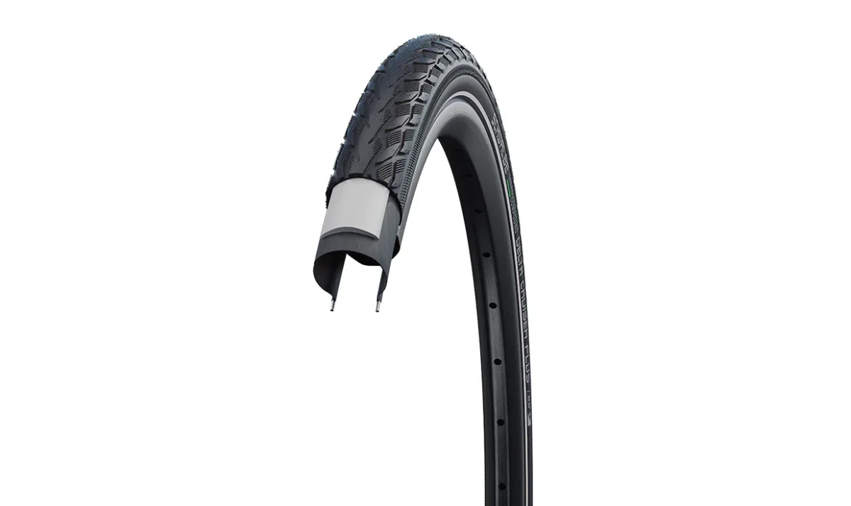 La cubierta Schwalbe Delta Cruiser Plus se beneficia de la tecnología PunctureGuard: una capa inferior de caucho antipinchazos de 3 mm debajo de la banda de rodadura, que ofrece un nivel de protección de 5 sobre 7 en Schwalbe. Esta cubierta debe montarse con cámara de aire, como la cámara Schwalbe de 28 pulgadas.