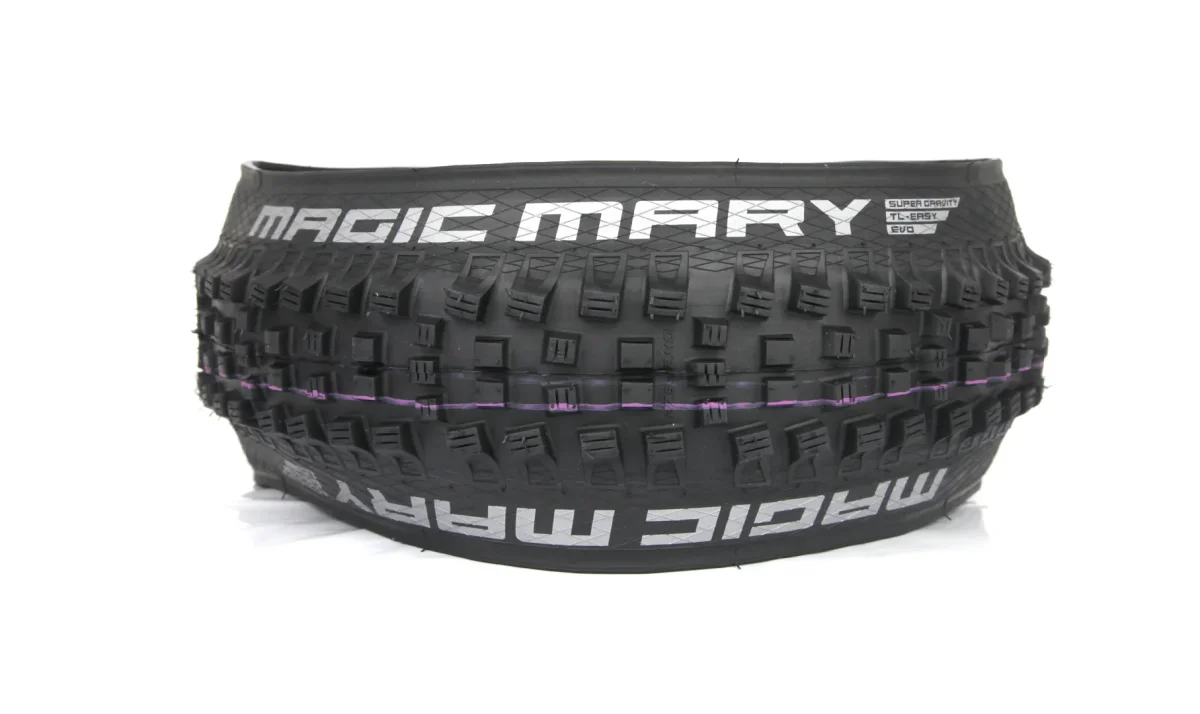 Aquí está la nueva cubierta Schwalbe Magic Mary con carcasa Super Gravity diseñada para la práctica de enduro agresivo y compuesto Addix Ultra Soft, con un agarre y flexibilidad increibles. El resultado es un neumático súper cómodo, que se pega al suelo como nunca antes, ofreciendo menor peso y más sensibilidad que un neumático DownHill.