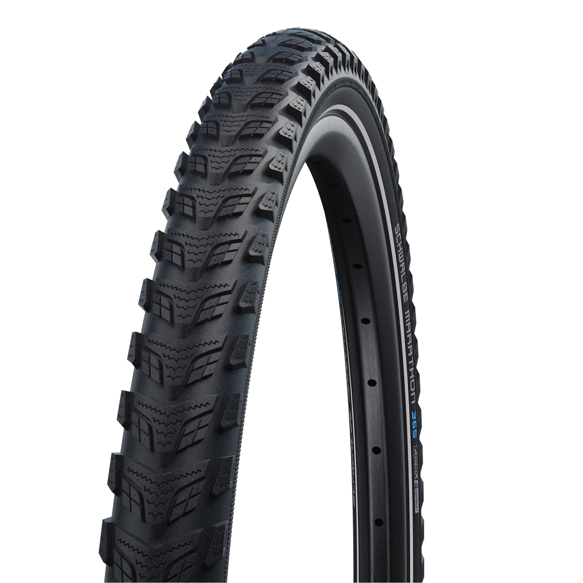 Con su banda de rodadura con laminillas, el neumático Schwalbe Marathon 365 ofrece un agarre óptimo en todas las estaciones. Ya sea en condiciones frías, húmedas o nevadas, el ciclista puede confiar en este neumático y planificar sus recorridos sin preocuparse por el clima.