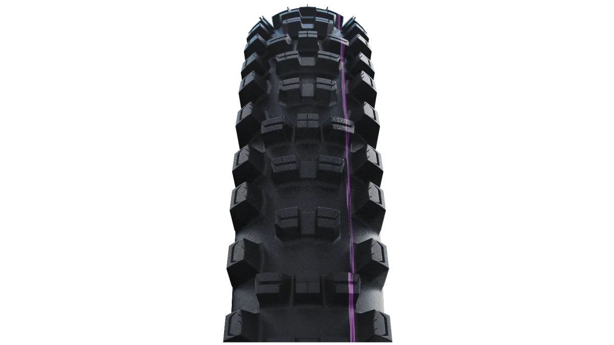 La Schwalbe Shredda Rear se ha inspirado en la Schwalbe Magic Mary con una disposición de tacos de 3/2/2/3, pero con un perfil más abierto y una altura de tacos más baja que la delantera, para optimizar el rodamiento. El neumático Shredda Rear proporciona muy buena estabilidad, máxima tracción al subir y excelentes habilidades de frenado. Funciona bien en condiciones húmedas y en terrenos sueltos o incluso embarrados.