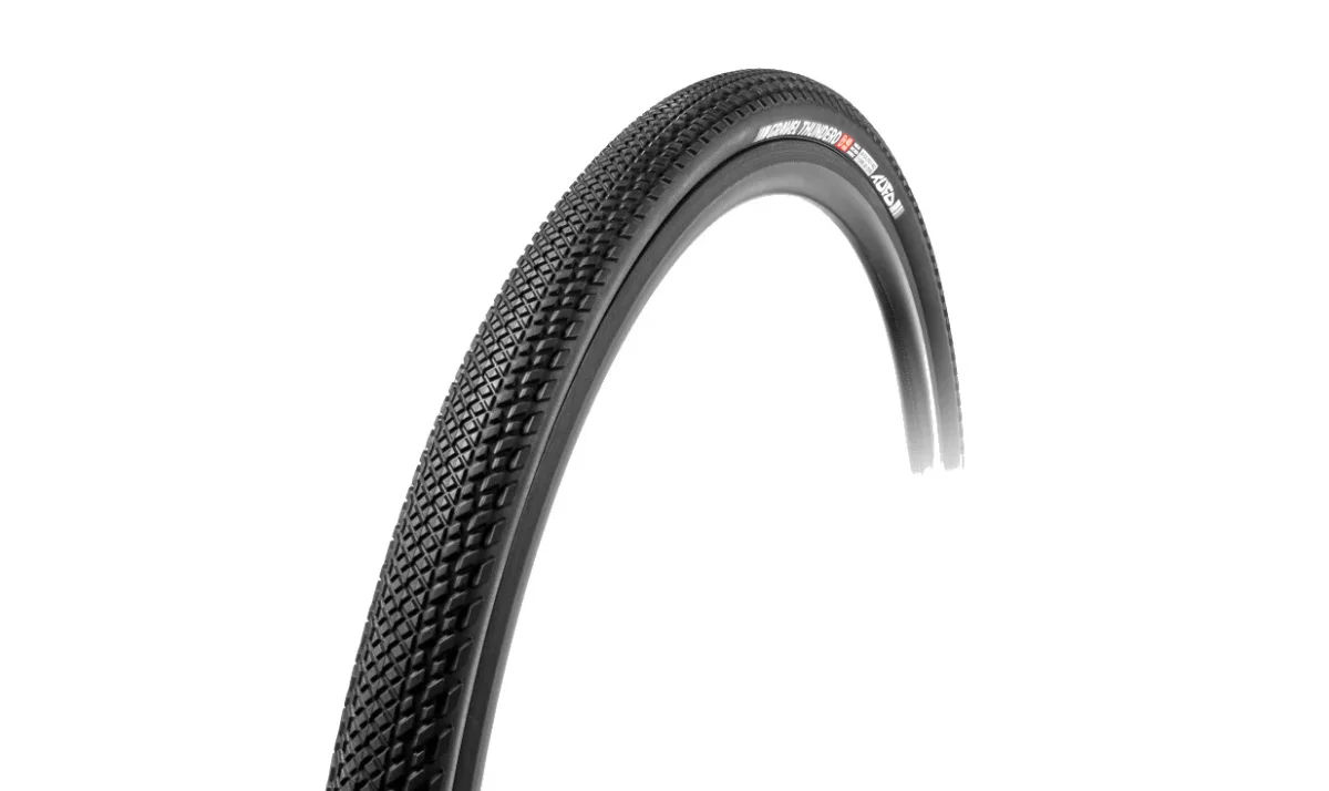 En 700x40C, este neumático Tubeless Ready pesa solo 430g, a una presión entre 2 y 5 bar (30-70 psi) y cuenta con 210/375 TPI, lo que hace de la Thundero una cubierta muy fuerte y rígida. La línea central de la banda de rodadura está formada por tacos muy juntos, que favorecen velocidad y generan muy poco ruido al rodar por carretera, además de tres filas de tacos en los lados exteriores de la banda de rodadura. Esto le permite pasar rápido por curva.