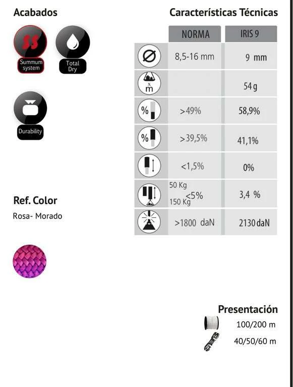 - Tratamiento Total Dry, acabado termoquimico que se aplica a la cuerda para impermeabilizarla y que absorba menos agua y por lo tanto pese menos.