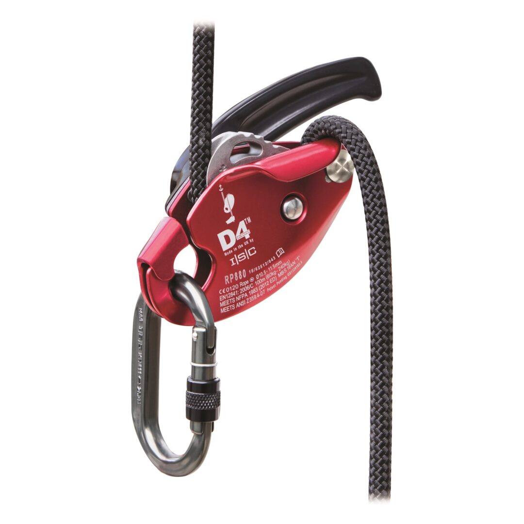 El D4 Descender presenta una acción de leva progresiva única e innovadora, que ofrece control a velocidades lentas o rápidas. La leva progresiva funciona mediante una leva que opera dentro de otra leva. También es fácil retroalimentar la cuerda a través del D4 y, por lo tanto, se puede usar para un ascenso suave o para transporte de emergencia (cuando se usa como parte de un ‘Z-rig’ 2: 1).