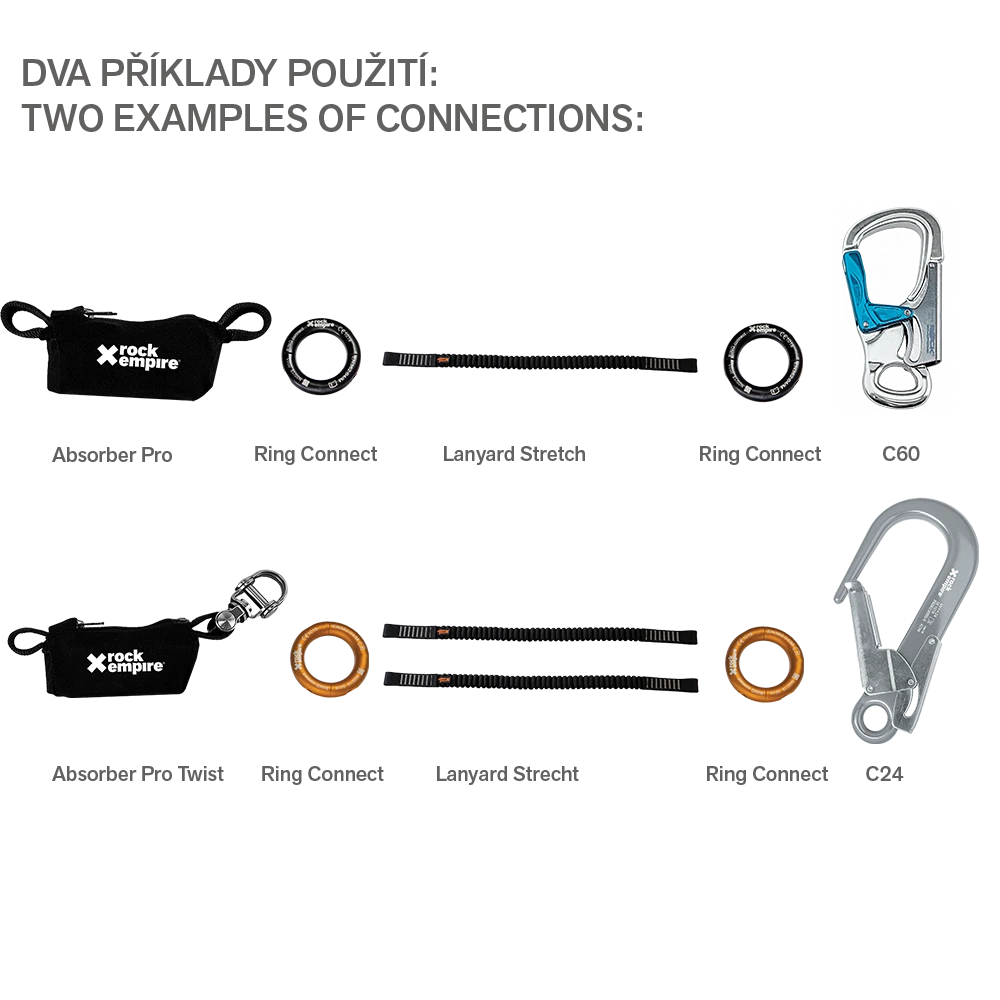 - Permite una longitud total de la cadena de anclaje de 2 m (absorbedor incluido).