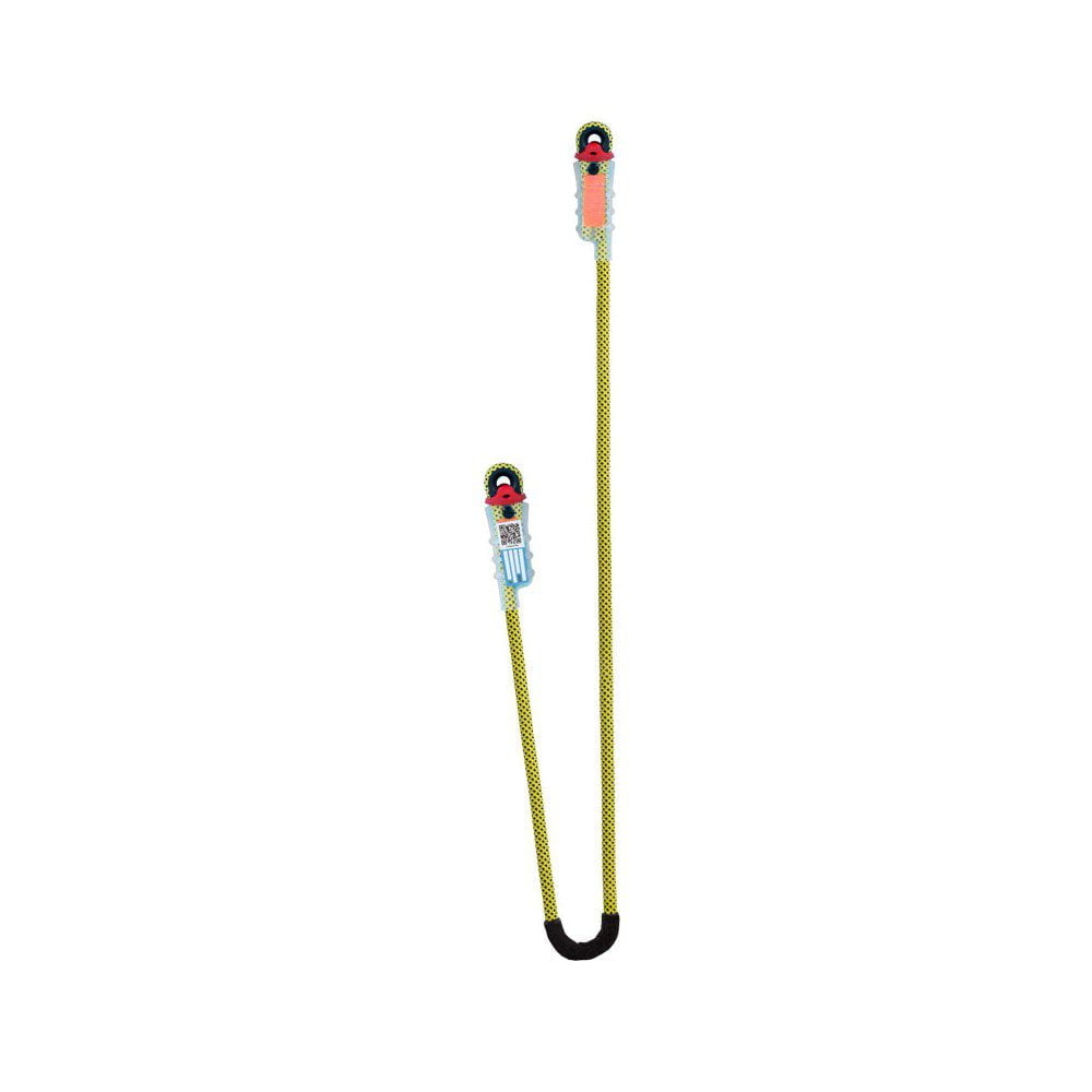 Elemento de amarre de cuerda dinámica con terminales cosidos. Las prestaciones dinámicas de este elemento de amarre son superiores a las de un elemento de amarre estático tradicional. Al confeccionar usted mismo el nudo en 8 de este elemento de amarre en el punto de anclaje de su arnés, obtendrá un elemento de amarre en V asimétrico adaptado a sus necesidades. El elemento de amarre realizado de este modo, como se indica en la ficha técnica, cumple con los requisitos de la norma EN 354.